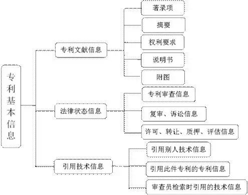 专利基本信息,记载了专利申请,审查、授权、驳回、撤回、转让、许可等专利申请阶段的信息,主要包括专利申请人、发明人、申请日期、授权日期、同族专利、引用和被引用、权利要求书、说明书等信息,如图1所示: