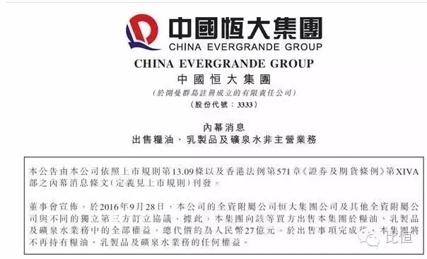 2016年9月28日,中国恒大一则内幕消息予以披露: