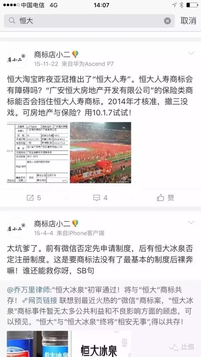 三、商标局对于恒大冰泉的异议案没有压力喽