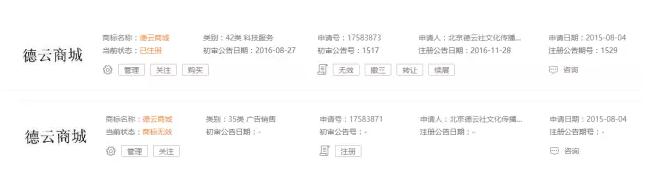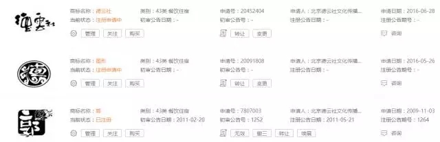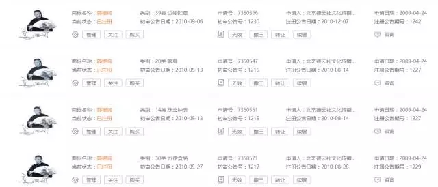 据了解,截至目前,以德云社作为商标申请人查询获悉,商标注册申请中的有69件,已注册153件,商标无效的8件。以郭德纲作为商标申请人查询获悉,共有12件商标。