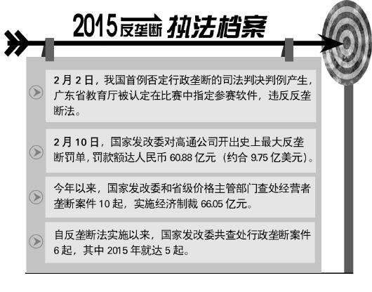 2015年,首例行政垄断司法判决和史上最大反垄断执法罚单的产生,让我国的反垄断执法工作迈出了更加沉稳的一步。