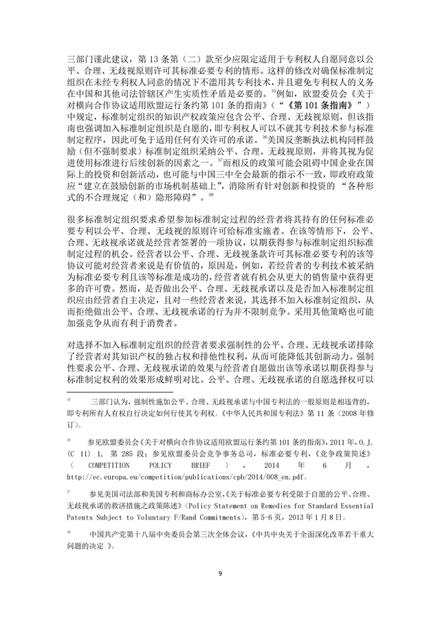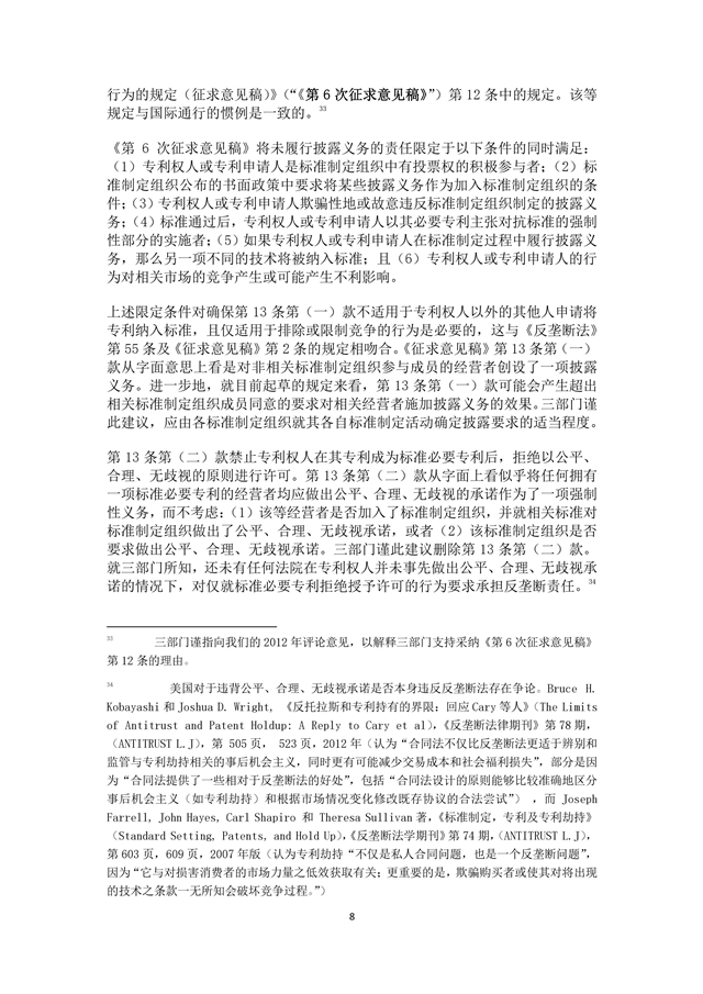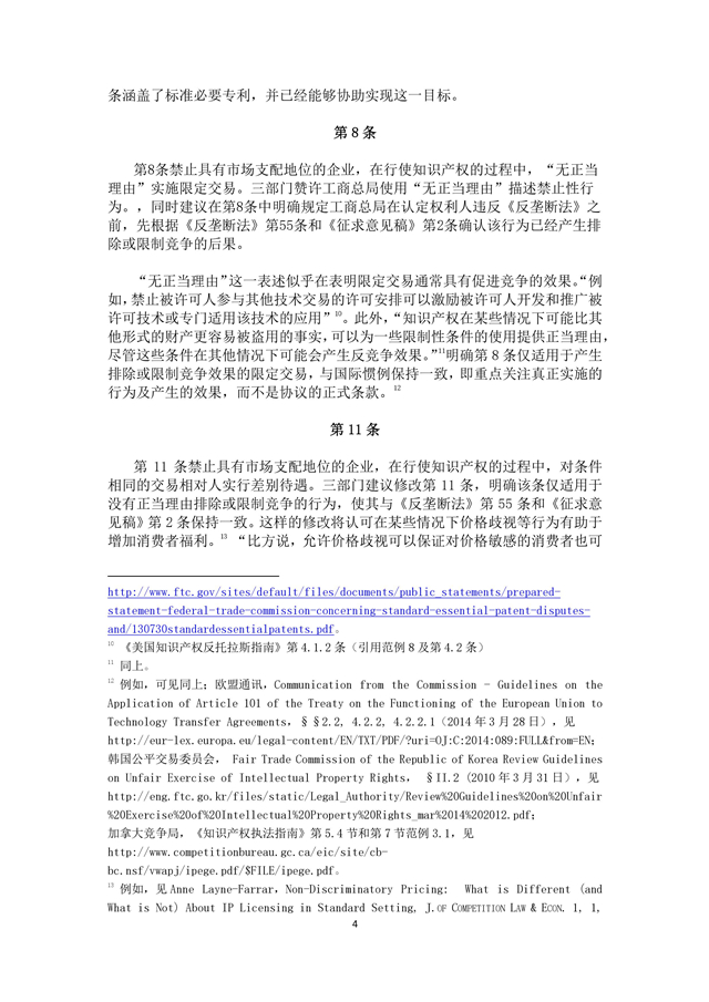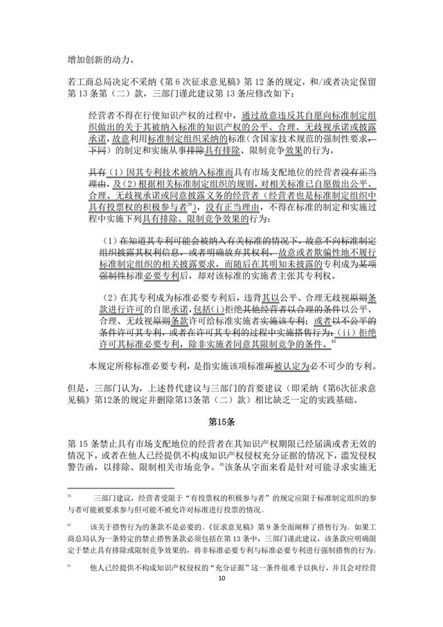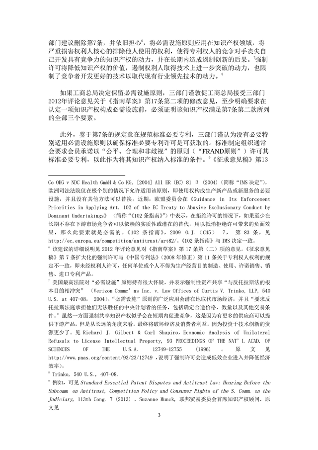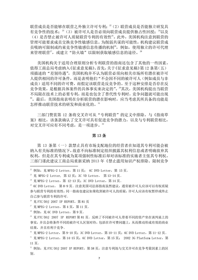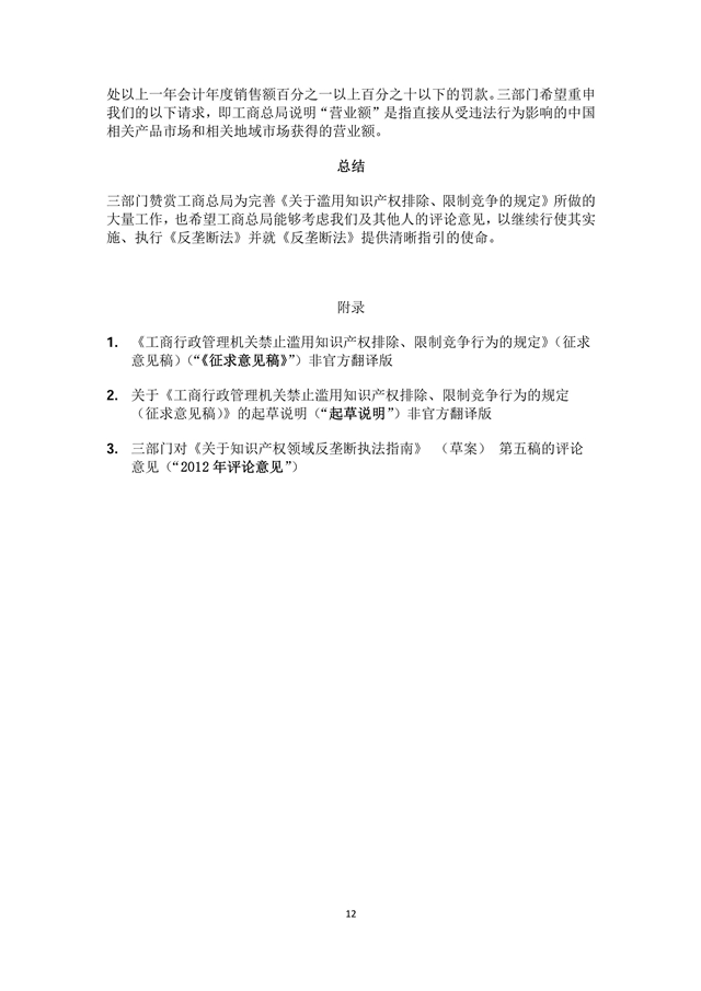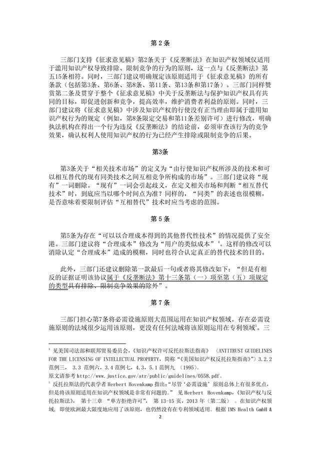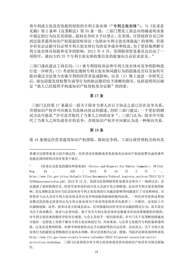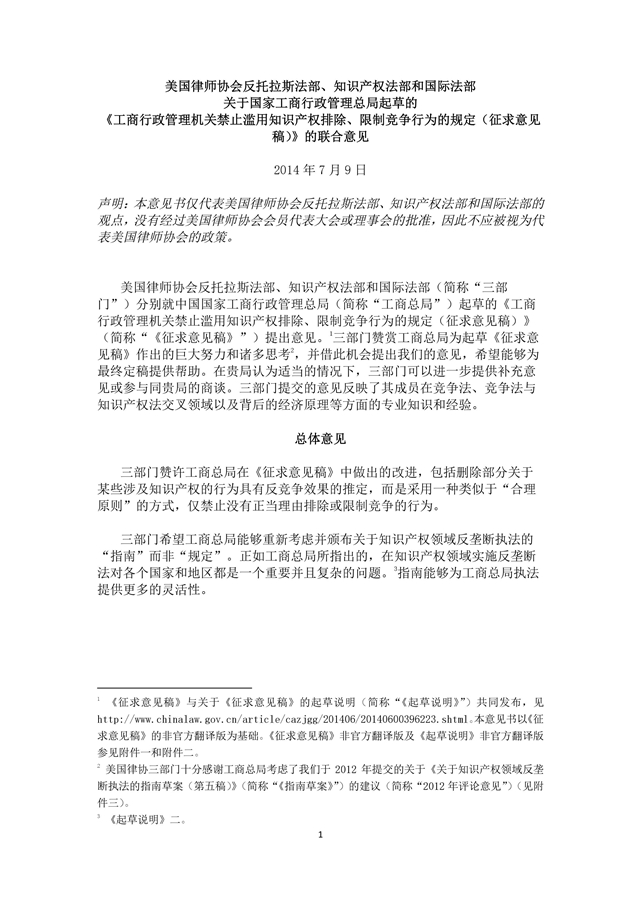 美国律协三部门关于《工商行政管理机关禁止滥用知识产权排除、限制竞争行为的规定(征求意见稿)》的联合意见