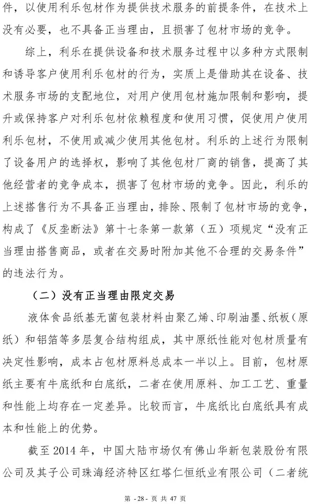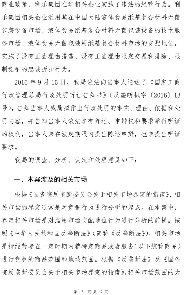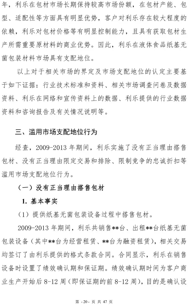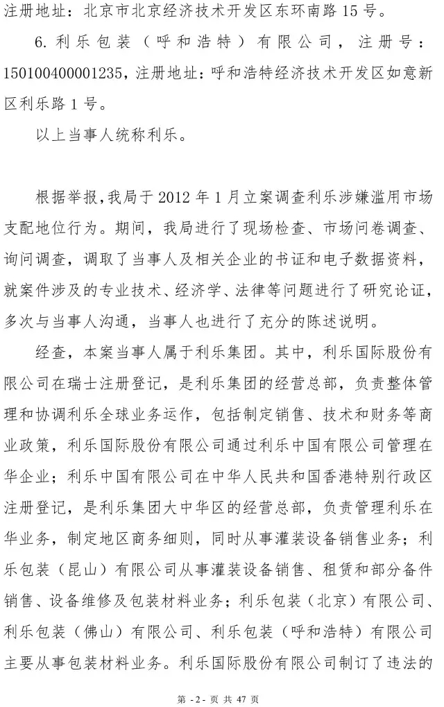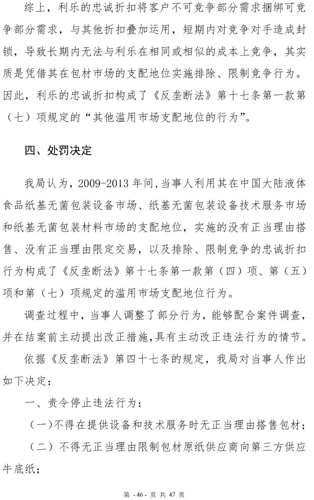 利乐反垄断案处罚决定书