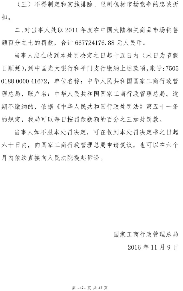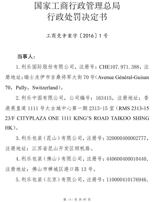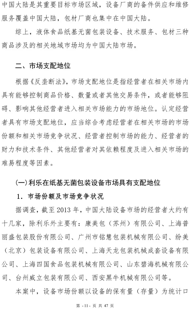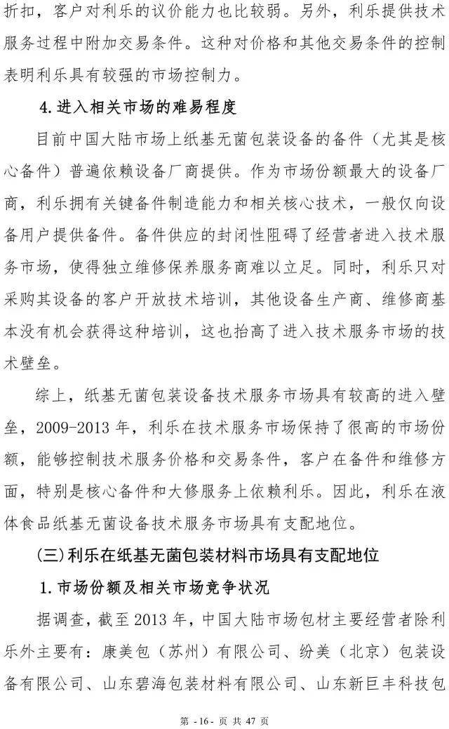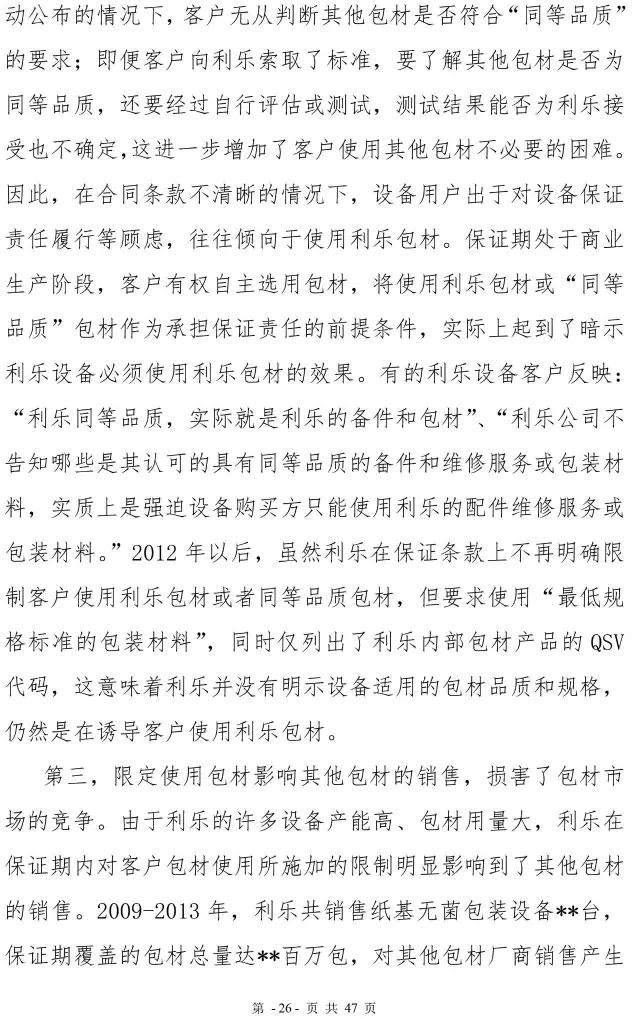 利乐反垄断案处罚决定书