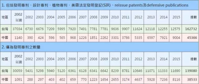 表1. 台湾及中国专利权人历年来获证之美国专利数