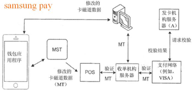 apply pay和samsung pay分别基于NFC技术和MST技术构建了各自的支付方案。
