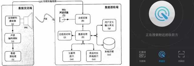 上海云途信息技术有限公司2010年提出的申请号为CN201010205532.0的专利申请介绍了一种声波支付方案,将支付信息通过声波传输。支付宝中的声波支付,不知道亲们有木有过尝试。