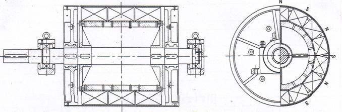 永磁辊的磁系为360度,与筒体无间隙,两者同步运转。