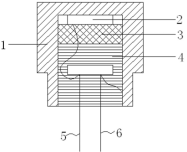 “1.压电式超声波传感器单元,其特征在于,包括压电陶瓷片、正极信号线、负极信号线、橡胶圈、消音海绵和外壳,所述的正极信号线与压电陶瓷片的正极区固定连接,所述的负极信号线与压电陶瓷片的侧面连接部固定连接,所述的压电陶瓷片周围设置一橡胶圈,并由外壳固定,所述的正极信号线与压电陶瓷片的下表面焊接连接,所述的负极信号线与压电陶瓷片的侧面连接部焊接连接,所述的压电陶瓷片的下表面设置一消音海绵与橡胶圈配合连接,所述的外壳从压电陶瓷片的下表面一侧将压电陶瓷片半包围起来。