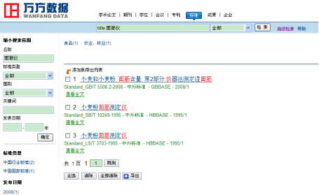 在专利数据库中检索到涉及面筋仪的文献量极少,而检索结果中文献大多涉及面筋测定仪的装置结构。我们进而转入技术标准检索,检索到可用的对比文件: