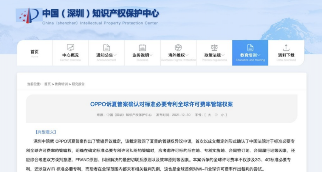 据了解,中国司法机关在此案中颁发了全球“禁诉令”,成功化解来自德国慕尼黑第一地区法院“反禁诉令”。同时,2020年10月,深圳中院发出管辖权裁定,这是中国法院第一次下达对标准必要专利全球费率享有管辖权的裁定,体现了中国法律在国际规则上的话语权。