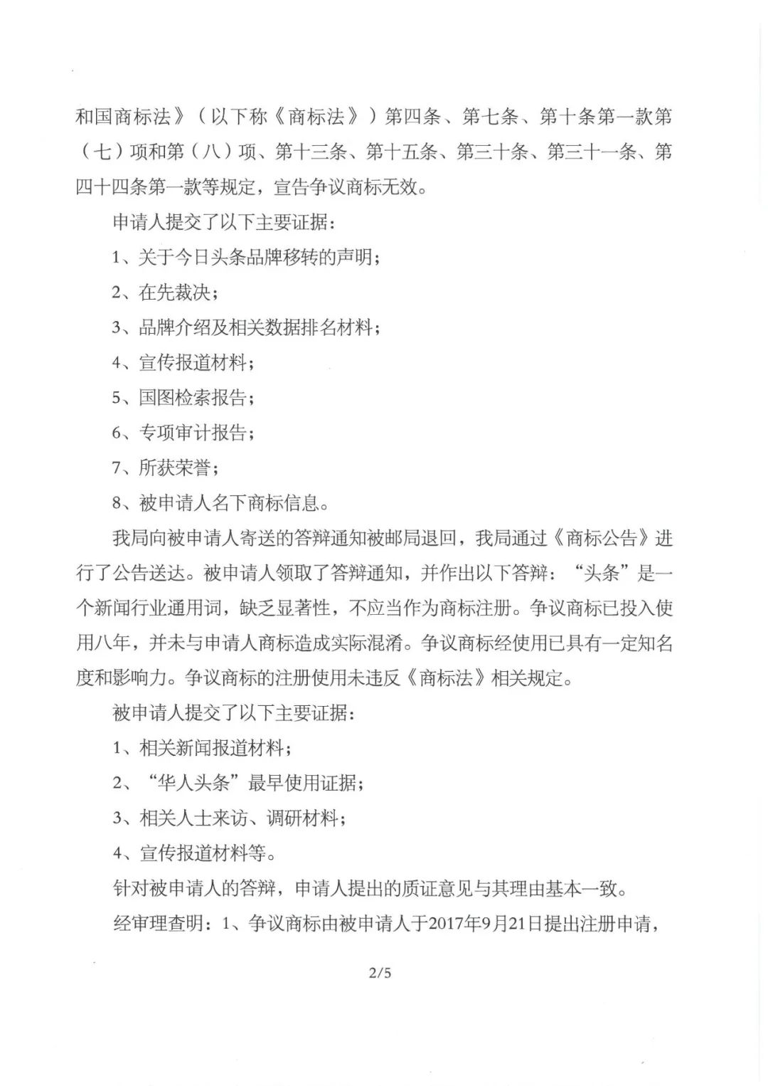 更多 >>抖音公司以其拥有注册商标“头条、今日头条”在先为由,针对华人头条已在世界100多个国家地区使用的“华人头条”商标提出“无效宣告”,经上海京沪商标事务所代理,坚持“头条”为行业用语,不能为一个主体专有使用,不构成近似,不构成混淆进行抗辨。