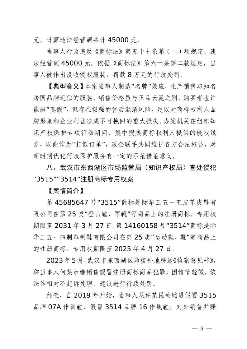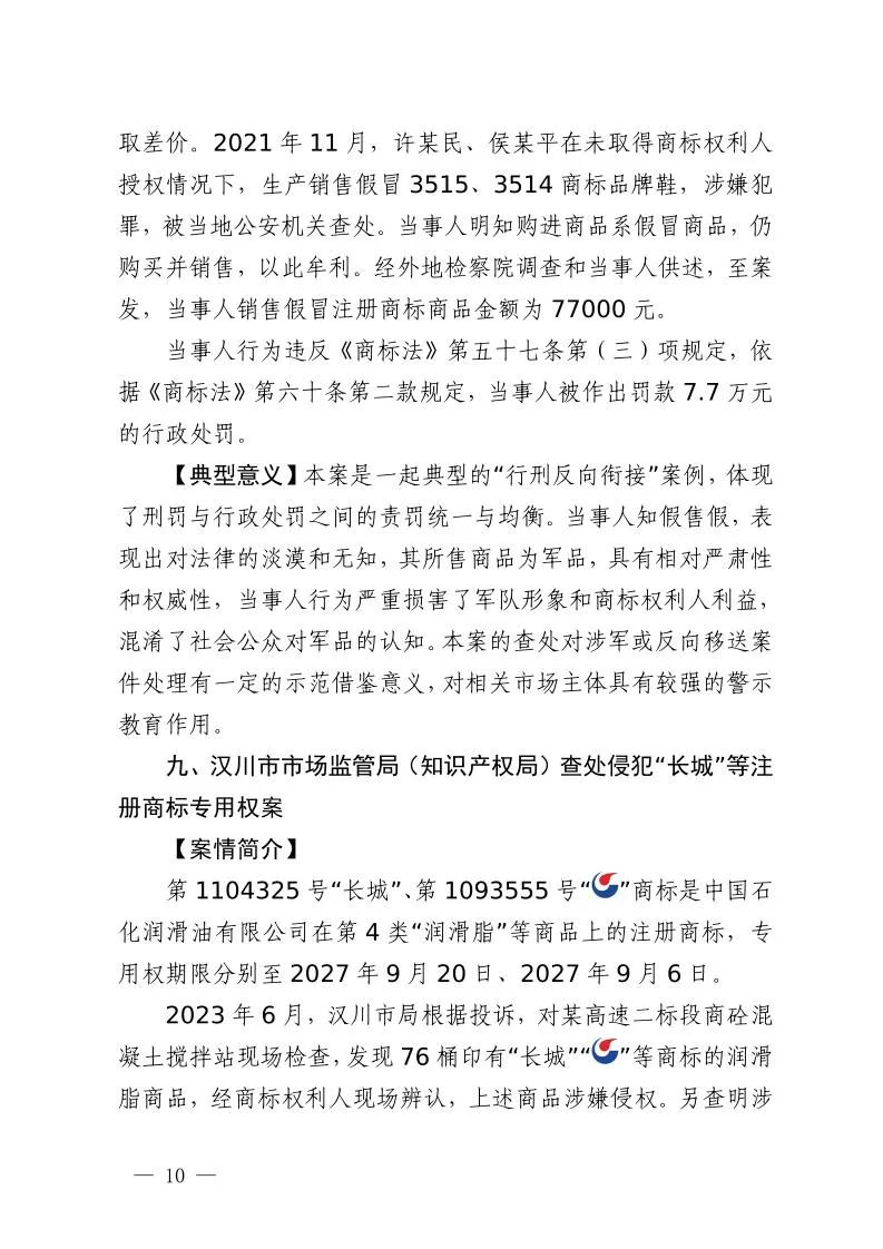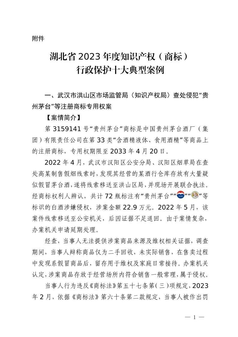 湖北省2023年度知识产权(商标)行政保护十大典型案例