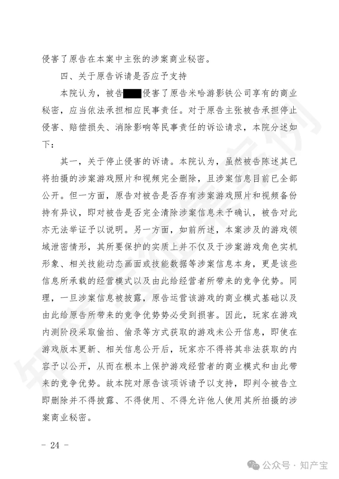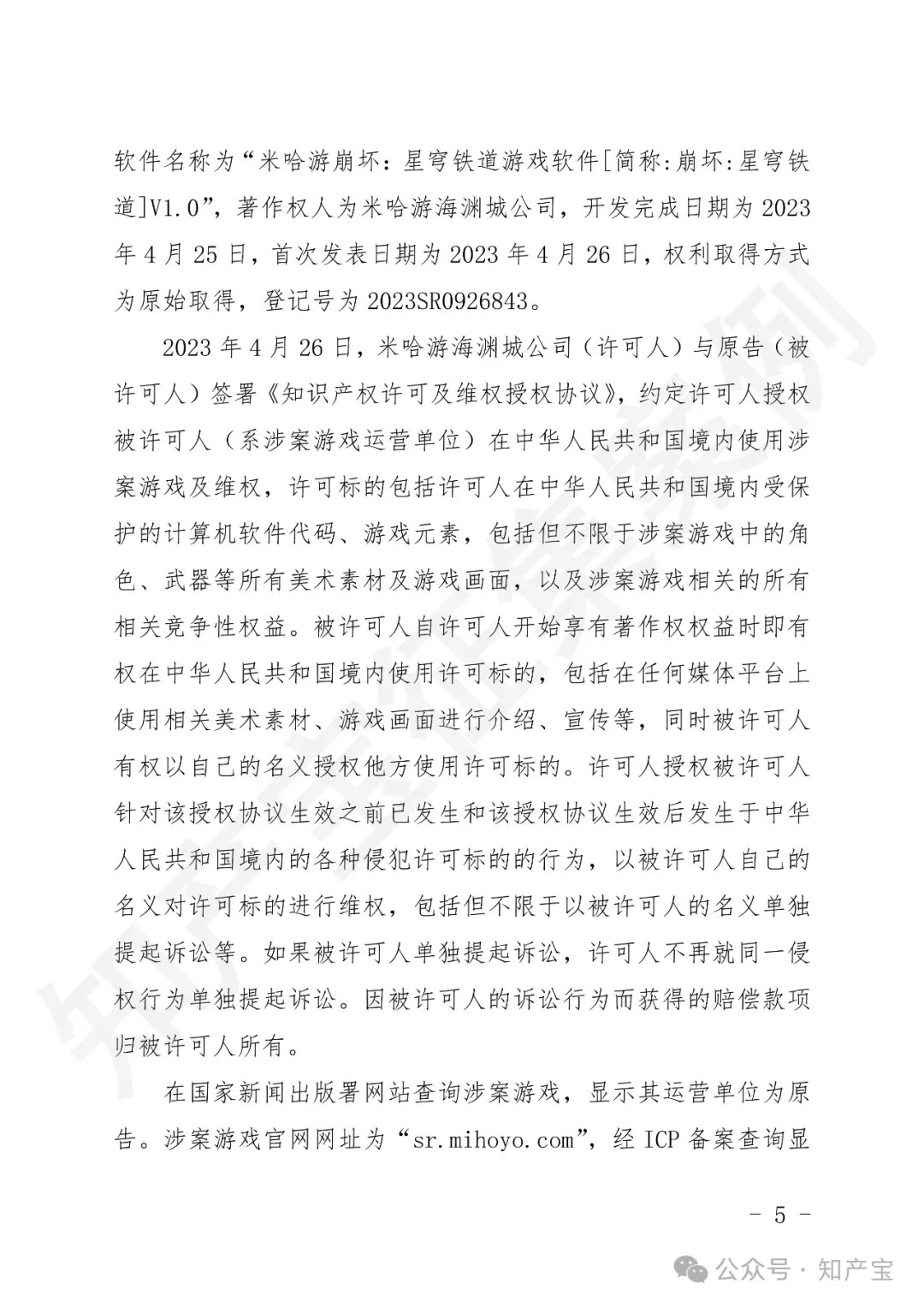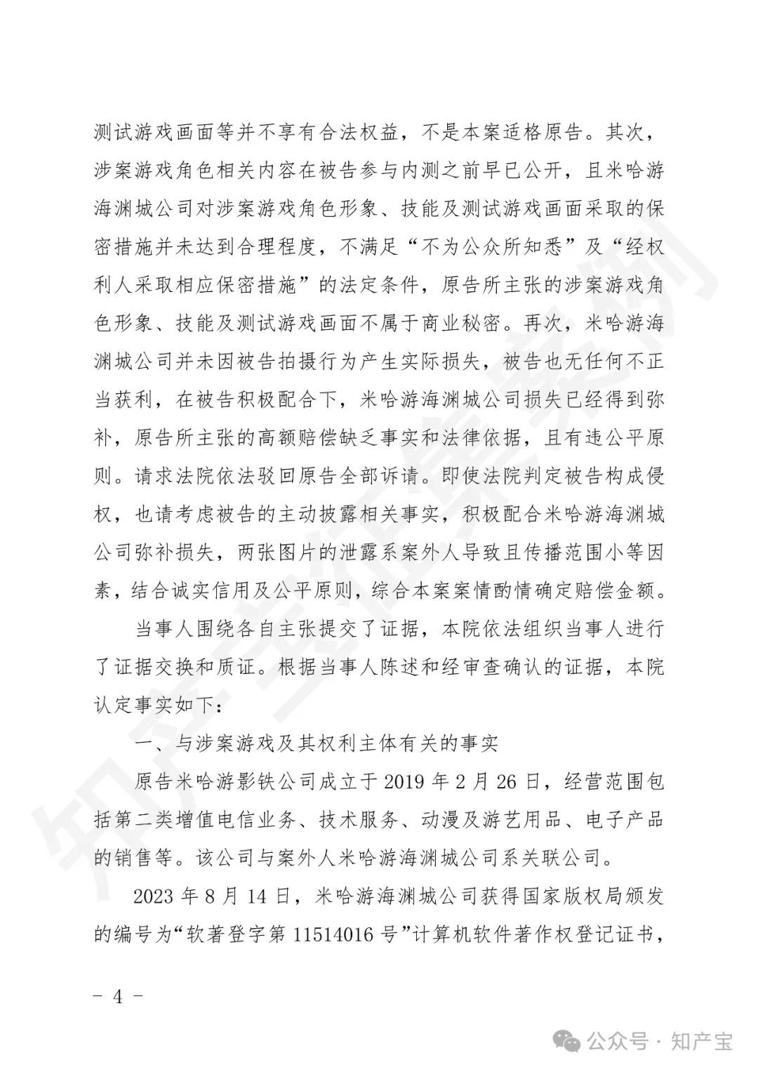 《崩坏:星穹铁道》未公开游戏角色商业秘密保护案