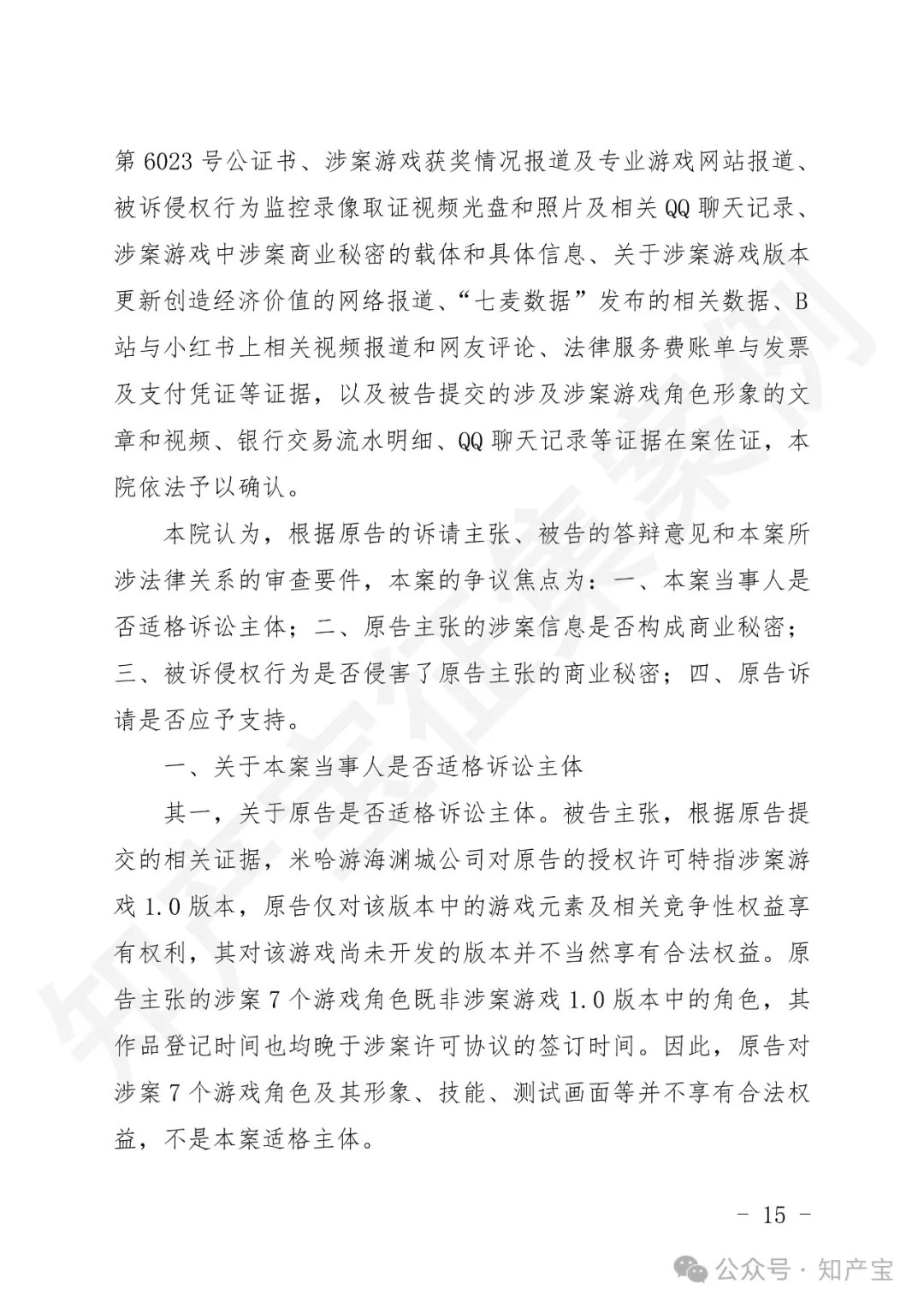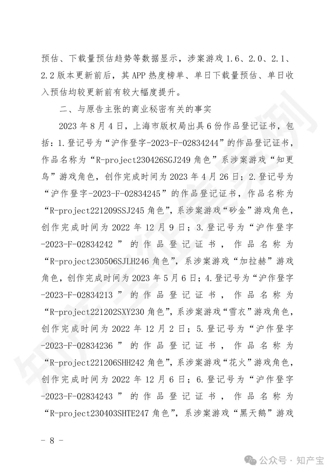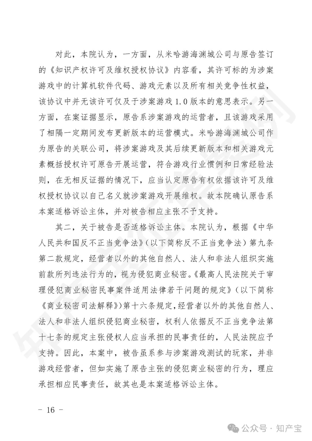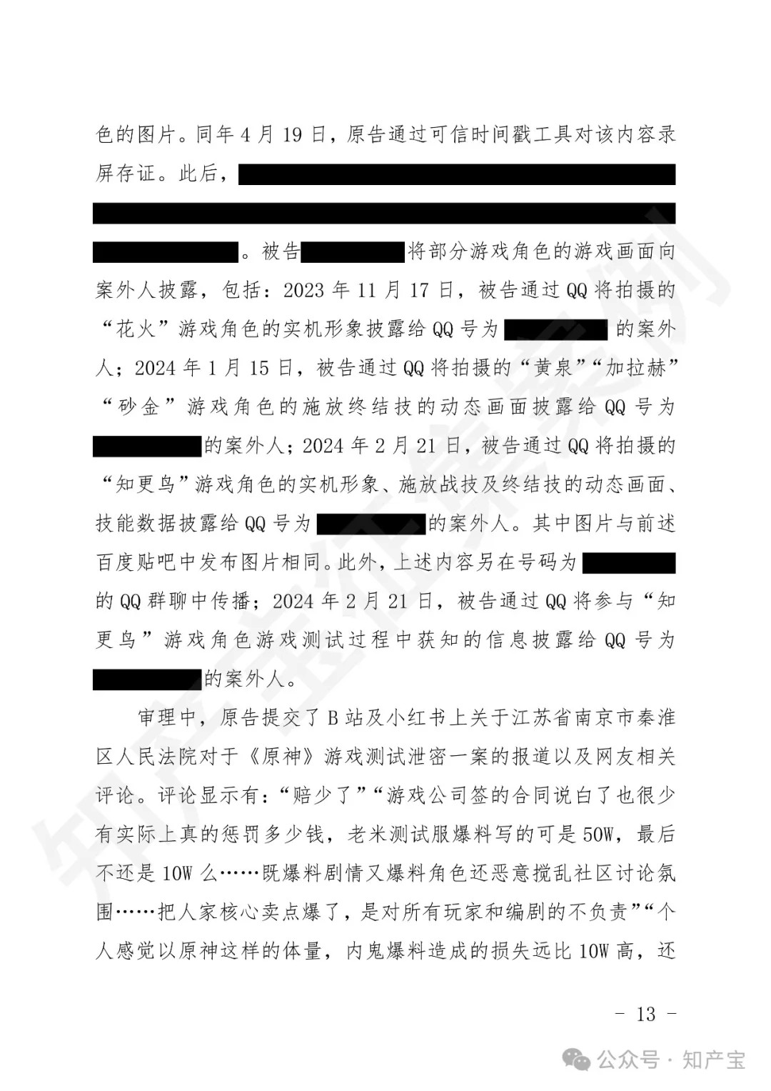 《崩坏:星穹铁道》未公开游戏角色商业秘密保护案