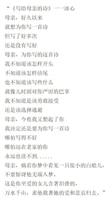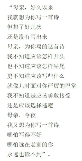 判决书显示的《诗潮》刊载的《写给母亲的诗》内容