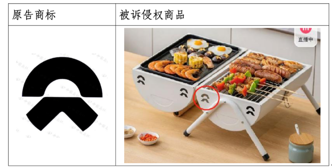 2.关于被诉侵权标识与涉案商标是否近似及是否会造成混淆的问题。法院认为,将被诉侵权标识与涉案注册商标进行比对,二者形状基本一致,仅存在细微差别,构成近似商标。注册商标的知名度越高,越容易受到他人攀附;注册商标的识别性和知名度越强,相关公众越容易认为被诉侵权标识的商品或服务来源于注册商标。本案中,被诉侵权标识位于烧烤炉两侧显眼位置,在涉案商标经过原告的宣传使用具有了较高的知名度、承载原告产品的商誉和美誉度、与蔚来公司建立了稳定联系的情况下,被告在被诉侵权商品上使用与涉案商标近似的标识,在隔离状态下,易使相关公众误认为该商品与蔚来公司或涉案注册商标的商品存在 某种特定联系,造成一定的混淆。同时,被告对被诉侵权标识的使用,极易淡化涉案注册商标已经形成的识别商品来源的作用,侵害了涉案注册商标专用权。
