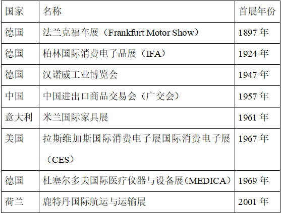 展会是历史悠久的商业活动,以下是一些知名展会的首展年份: