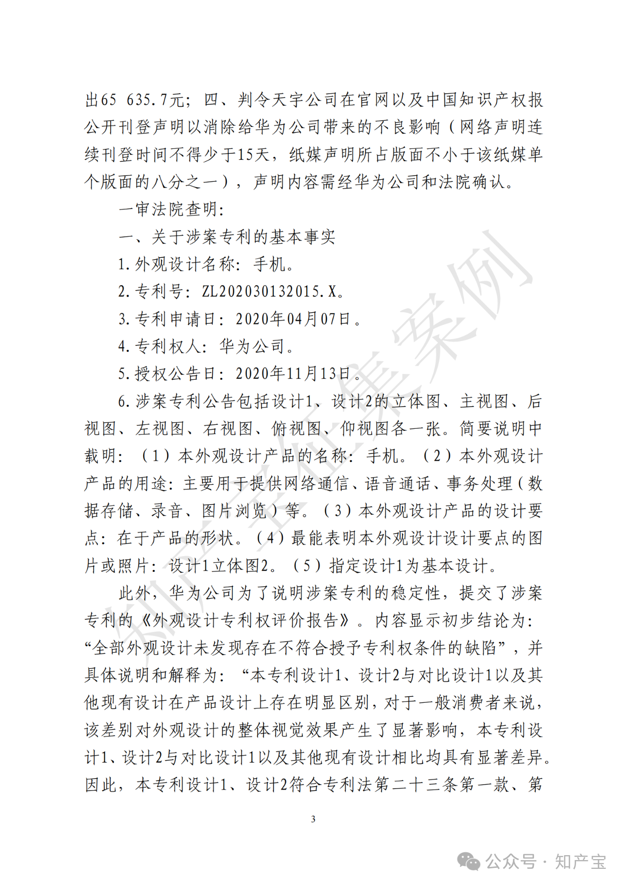 HUAWEI Mate40 RS手机自上市以来,以其独特的外观设计备受消费者青睐。然而,却被众多非法厂商抄袭、摹仿,不仅引发了大量消费者的混淆、误认,仿品的低劣质量也极大程度地损害了华为公司的品牌形象和商誉。2023年至2024年,华为以侵害外观设计专利权为由对侵权厂商北京天宇朗通通信设备有限公司(天宇公司)提起诉讼。本案历经一审、二审和再审,最终于近期尘埃落定,天宇公司的再审申请被最高院驳回,华为公司获百万判赔。