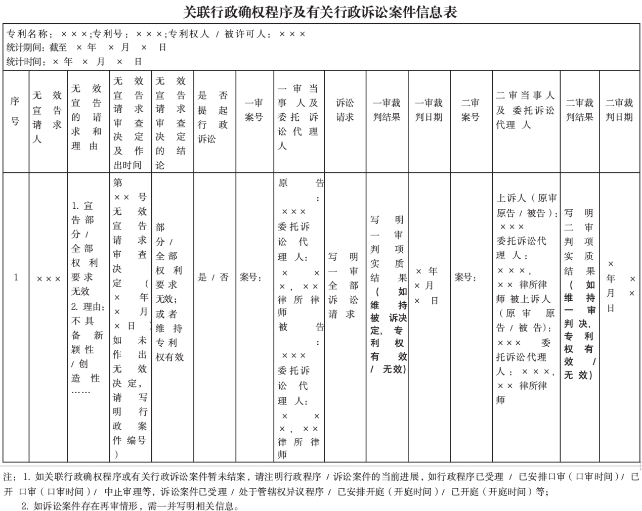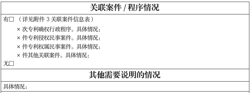 原告应当披露所有关联案件及程序情况,对无效宣告及未决程序需进行特别说明。根据附件3的表格说明准确填写案件信息表。