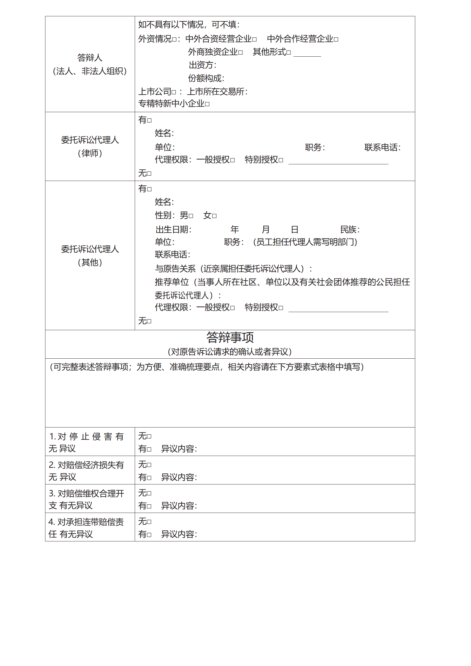 在填写“答辩事项”时,要针对原告的诉讼请求逐项表达认可或异议。如果选择“有”,则需对相应事项说明事实和理由。