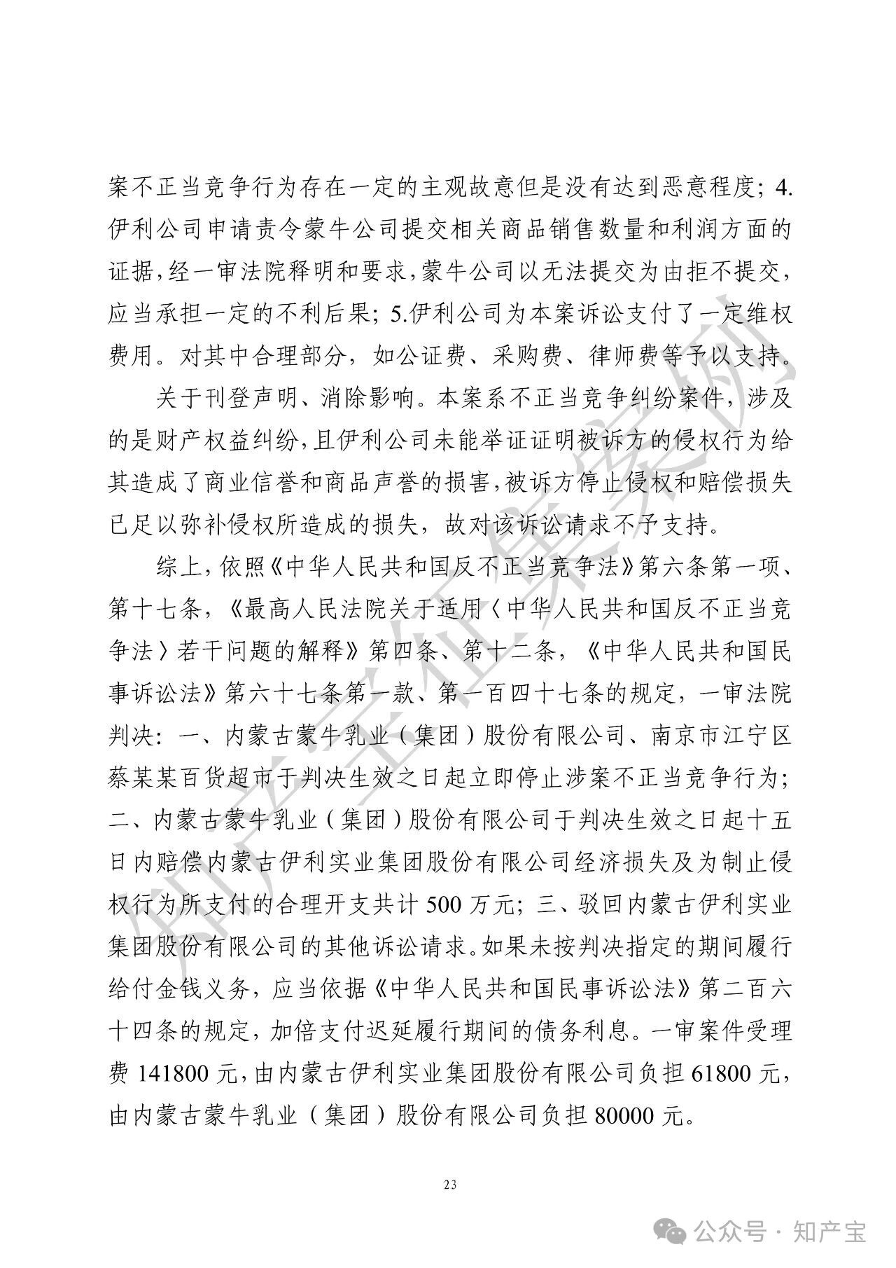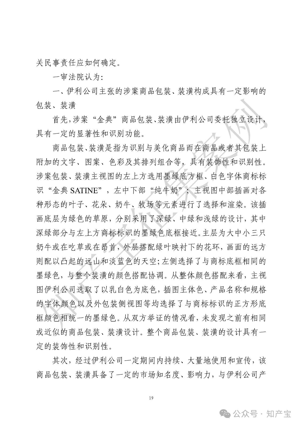 本案中,法院围绕伊利公司主张的涉案商品包装、装潢是否构成“有一定影响的包装、装潢”及蒙牛公司被诉行为是否构成不正当竞争两大核心争议,作出如下裁判观点: