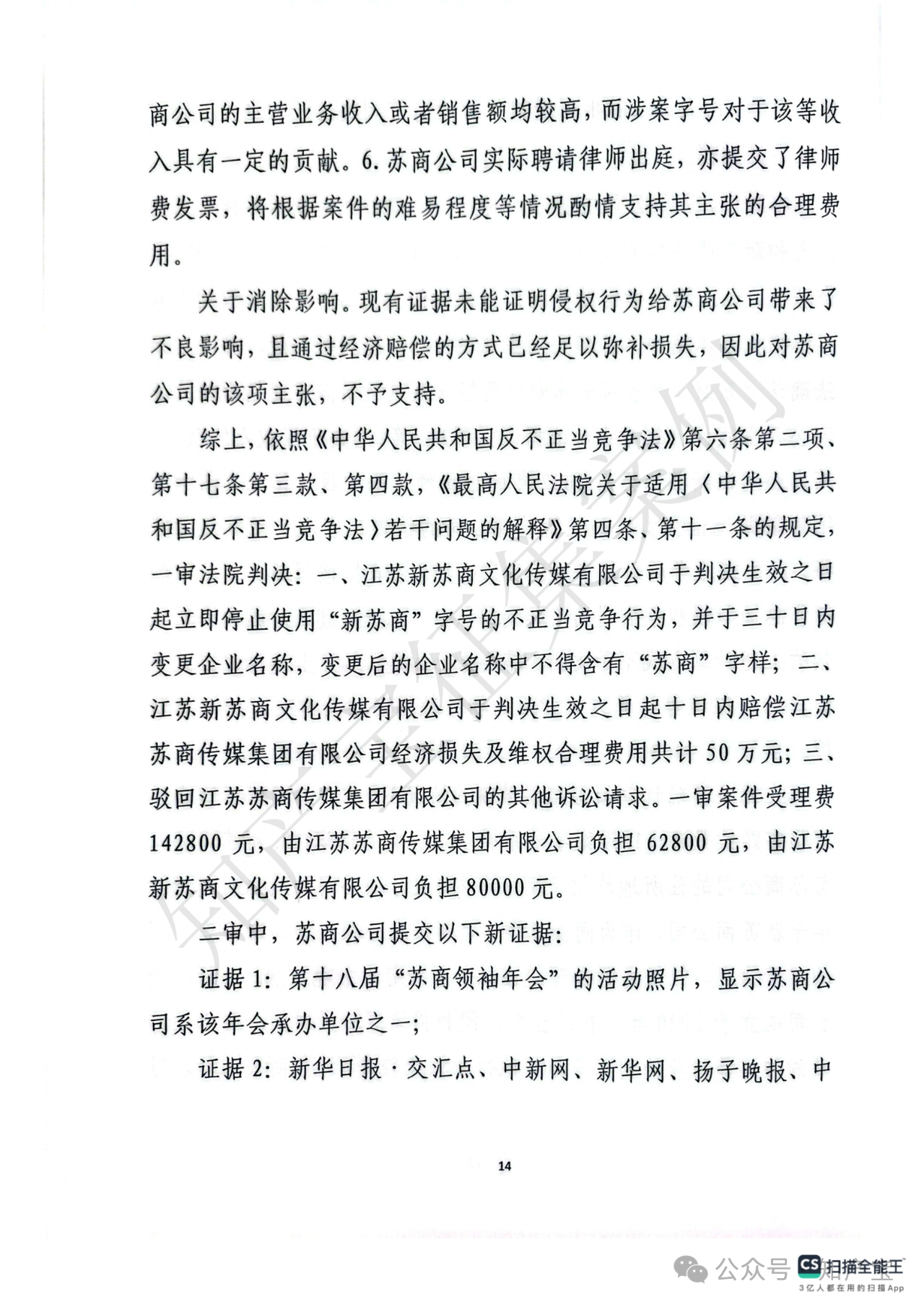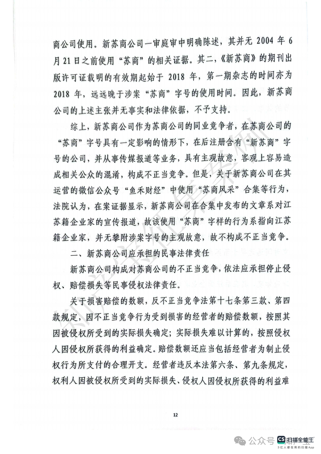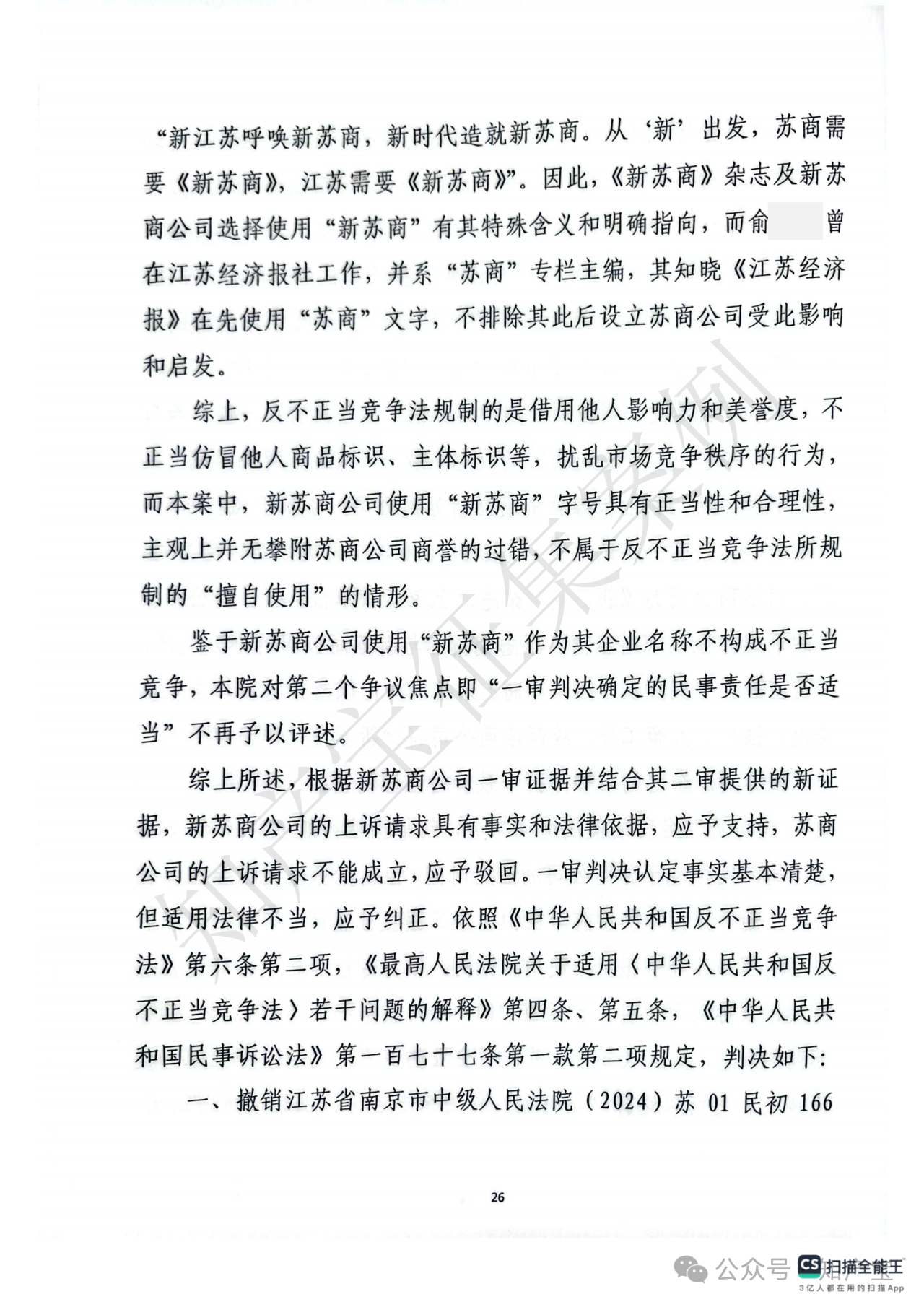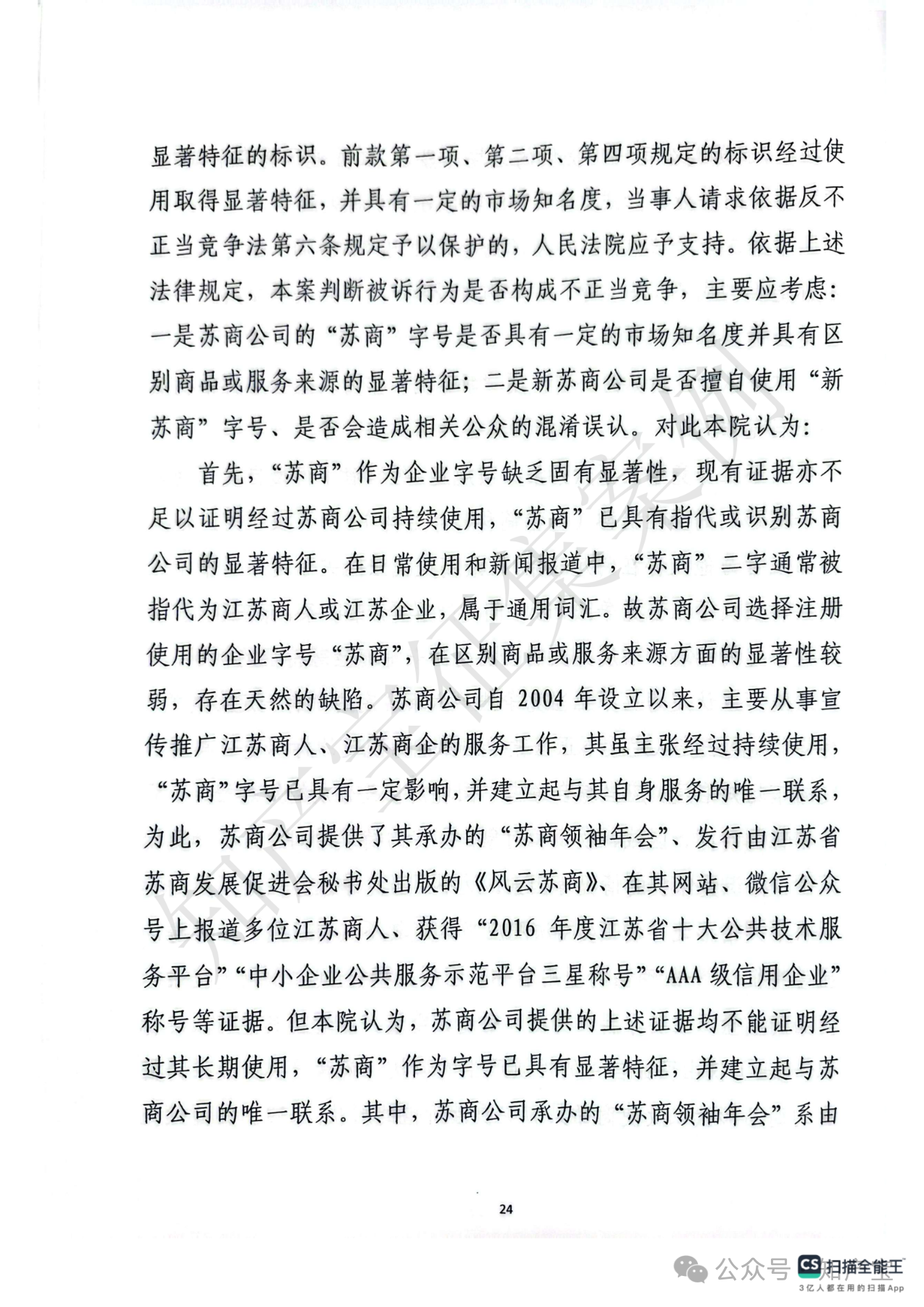 首先,关于江苏苏商传媒集团有限公司主张的“苏商”字号是否构成反不正当竞争法所?;さ摹坝幸欢ㄓ跋斓钠笠得啤?#xff0c;江苏省高院认定“苏商”二字缺乏固有显著性,现有证据不足以证明该字号经苏商公司持续使用后已具备指代或识别其市场主体或服务来源的显著特征。在日常使用及新闻报道中,“苏商”通常被作为指代江苏商人或江苏企业的通用词汇,故苏商公司的“苏商”字号不属于具有一定市场知名度且能区分商品或服务来源的企业名称。其次,关于江苏新苏商文化传媒有限公司注册使用“新苏商”字号的正当性,法院认为其行为不具有攀附苏商公司商誉的故意:其一,新苏商公司系新华报业传媒因《新苏商》杂志采编与经营分离需要而独资设立;其二,虽新华报业传媒注册新苏商公司的时间晚于苏商公司注册“苏商”字号的时间,但新华报业传媒早于苏商公司注册前已在《江苏经济报》中使用“苏商”作为专栏名称宣传江苏商人及商界事件,后于2018年创刊《新苏商》杂志时选择“新苏商”作为名称,创刊词明确“新江苏呼唤新苏商、新时代造就新苏商”,赋予“新苏商”特殊含义及明确指向,旨在服务江苏民营企业与企业家发展。综上,新苏商公司使用“新苏商”字号具有合理背景与正当意图,主观无攀附故意,不构成反不正当竞争法规定的“擅自使用”他人有一定影响企业名称的不正当竞争行为。