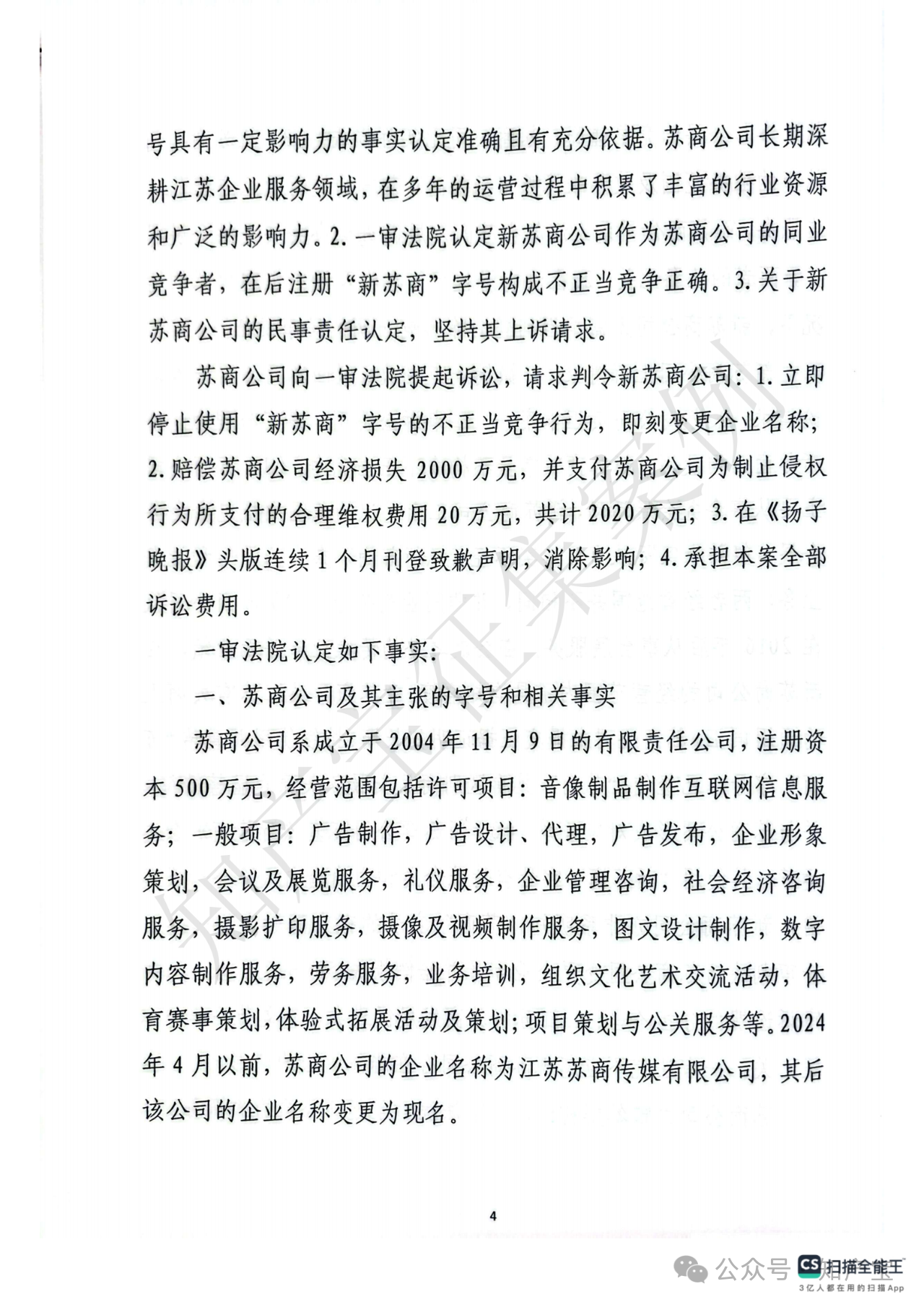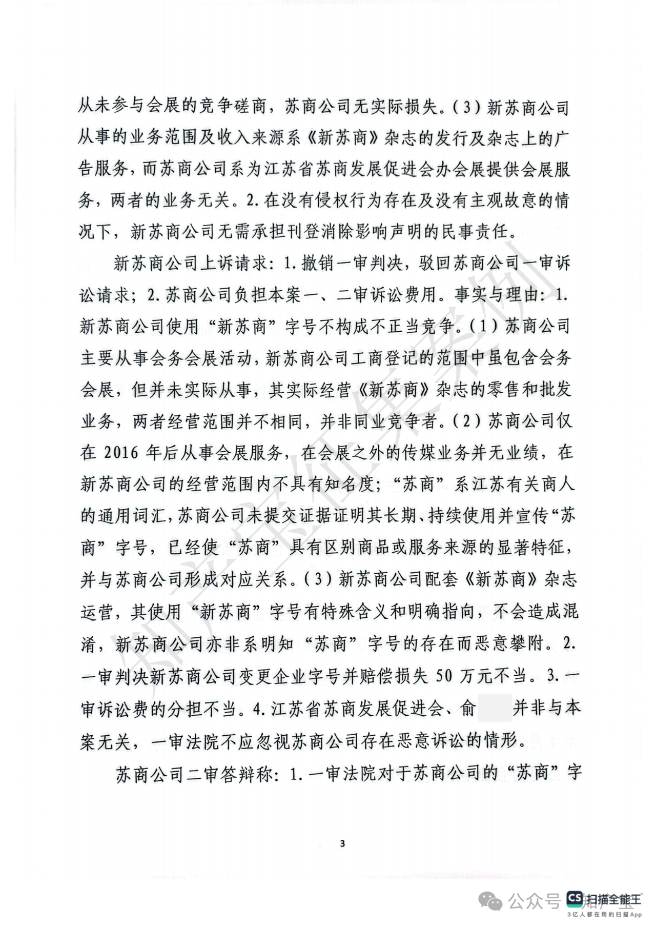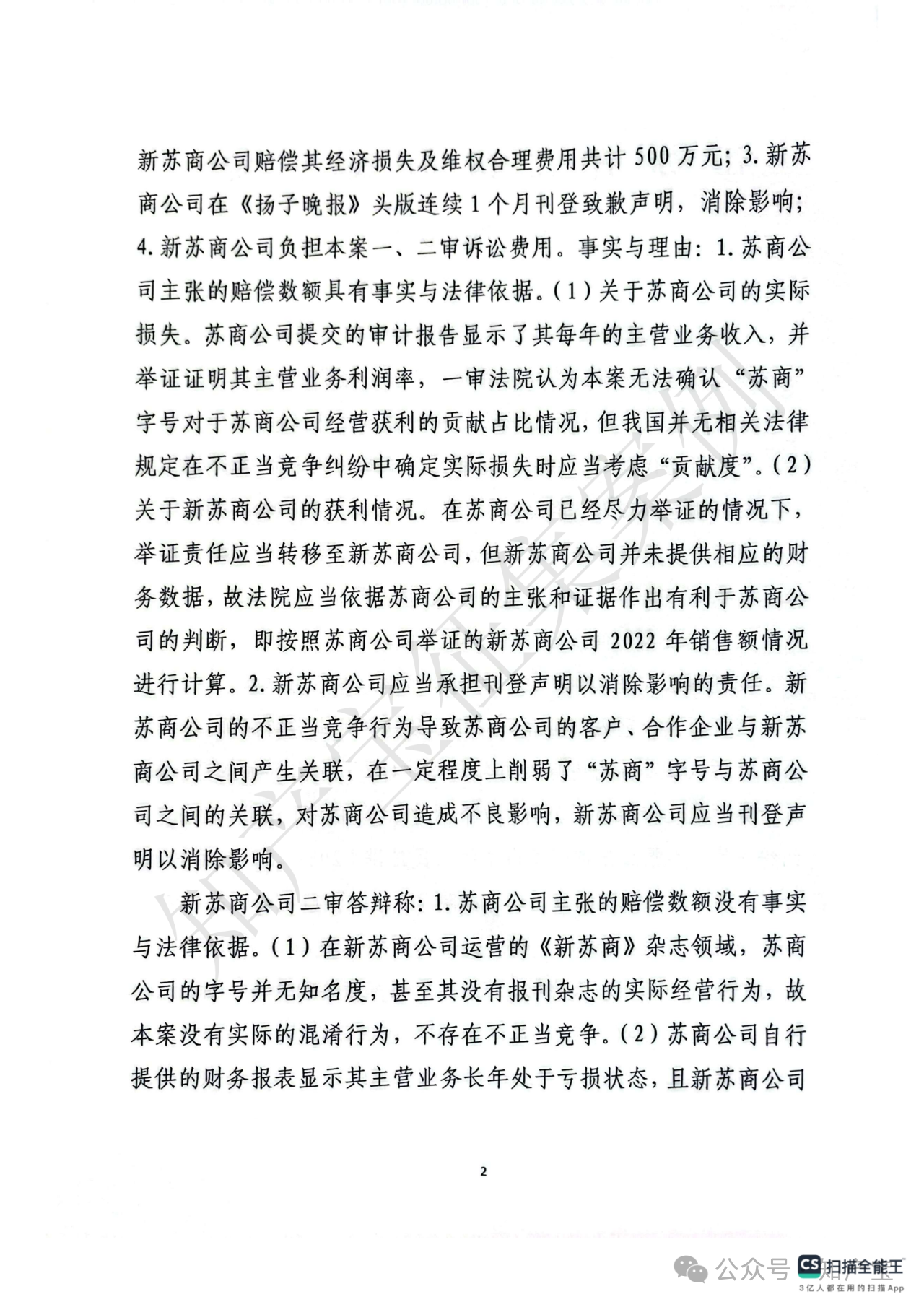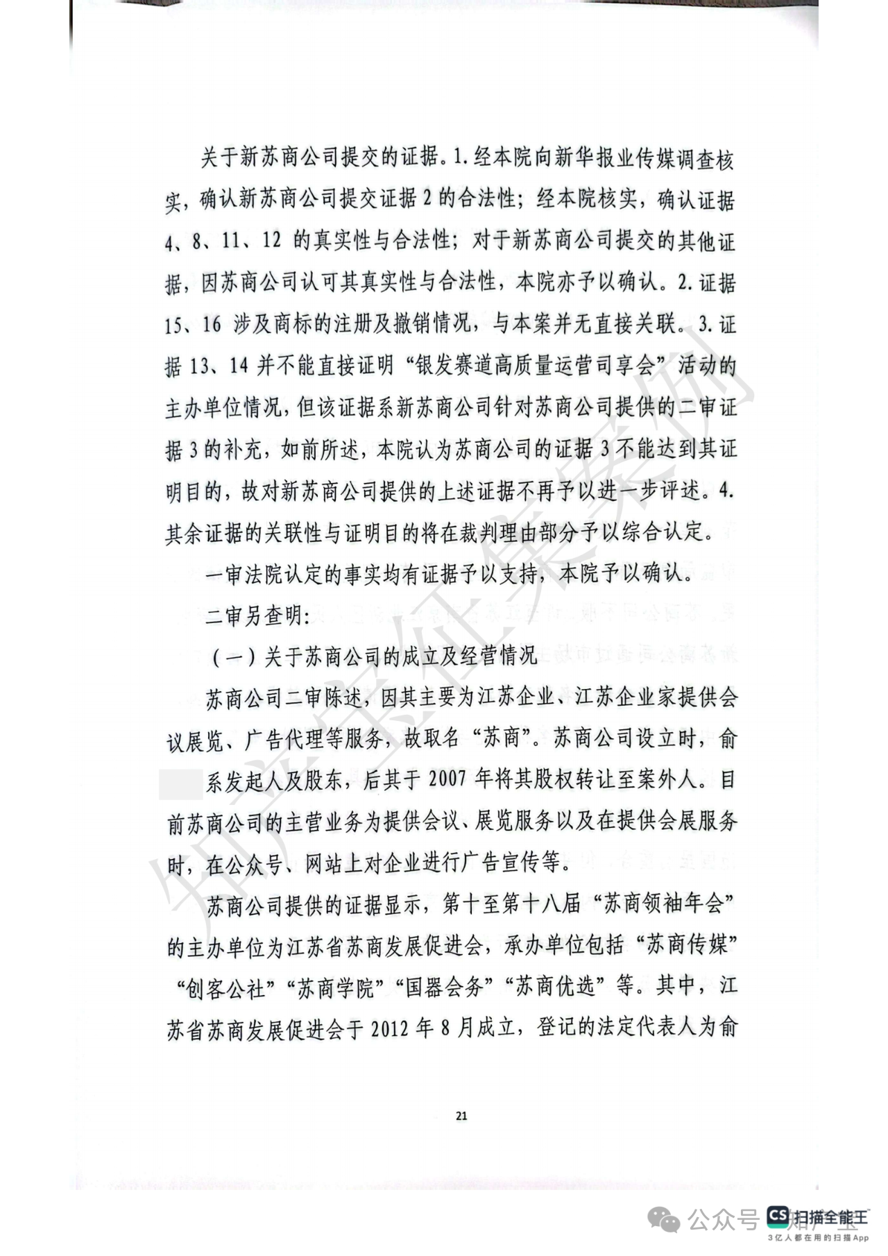 首先,关于江苏苏商传媒集团有限公司主张的“苏商”字号是否构成反不正当竞争法所?;さ摹坝幸欢ㄓ跋斓钠笠得啤?#xff0c;江苏省高院认定“苏商”二字缺乏固有显著性,现有证据不足以证明该字号经苏商公司持续使用后已具备指代或识别其市场主体或服务来源的显著特征。在日常使用及新闻报道中,“苏商”通常被作为指代江苏商人或江苏企业的通用词汇,故苏商公司的“苏商”字号不属于具有一定市场知名度且能区分商品或服务来源的企业名称。其次,关于江苏新苏商文化传媒有限公司注册使用“新苏商”字号的正当性,法院认为其行为不具有攀附苏商公司商誉的故意:其一,新苏商公司系新华报业传媒因《新苏商》杂志采编与经营分离需要而独资设立;其二,虽新华报业传媒注册新苏商公司的时间晚于苏商公司注册“苏商”字号的时间,但新华报业传媒早于苏商公司注册前已在《江苏经济报》中使用“苏商”作为专栏名称宣传江苏商人及商界事件,后于2018年创刊《新苏商》杂志时选择“新苏商”作为名称,创刊词明确“新江苏呼唤新苏商、新时代造就新苏商”,赋予“新苏商”特殊含义及明确指向,旨在服务江苏民营企业与企业家发展。综上,新苏商公司使用“新苏商”字号具有合理背景与正当意图,主观无攀附故意,不构成反不正当竞争法规定的“擅自使用”他人有一定影响企业名称的不正当竞争行为。