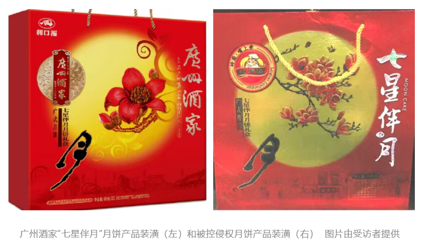 近日,广州知识产权法院对广州酒家集团股份有限公司(下称广州酒家)起诉佛山某食品厂及其两家代工厂等不正当竞争纠纷案作出二审判决,认定广州酒家推出的“七星伴月”月饼装潢(下称权利装潢)构成有一定影响的商品装潢,佛山某食品厂等生产、销售的“某师傅七星伴月”月饼装潢(下称被诉装潢)与权利装潢高度近似,容易造成消费者混淆误认,被诉行为构成对广州酒家的不正当竞争,佛山某食品厂须赔偿广州酒家经济损失及合理开支共计50万元,涉案两家代工厂在15万元范围内承担连带责任。