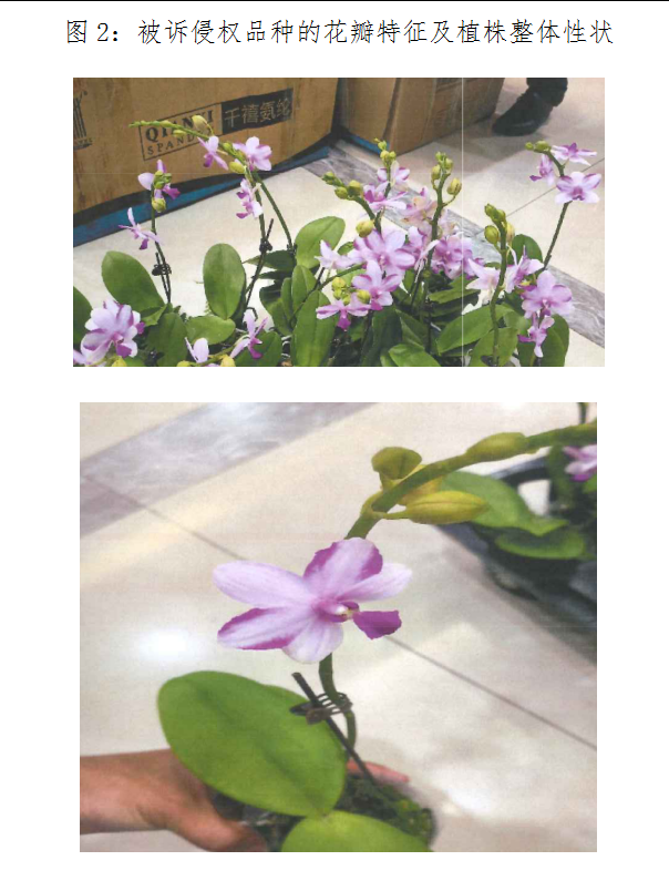 最高人民法院二审审理后认为,因并无农业农村部保存的“钜宝紫水晶”标准样品,该案缺乏有效证据证明涉案检测报告使用的对照样品系授权品种“钜宝紫水晶”的繁殖材料,故该报告尚不足以单独证明被诉侵权品种与授权品种具有同一性。该案中,创某公司使用“紫水晶”名称销售侵权产品,所使用的品种名称系“钜宝紫水晶”的核心识别要素,与授权品种名称相似,且创某公司未能提供证据证明其所销售蝴蝶兰命名为“紫水晶”的合理依据,根据“一品一名”的植物新品种命名规则,被诉侵权品种系授权品种“钜宝紫水晶”的可能性较大。而且,经二审合议庭比对“钜宝紫水晶”DUS测试报告(见图1)和涉案公证书中的被诉侵权植株照片(见图2),被诉侵权植株和授权品种在主要性状方面具有高度相似性。涉案检测报告虽系权利人自行委托检测,但也可以用于进一步佐证被诉侵权“紫水晶”与“钜宝紫水晶”系同一品种的可能性。综合来看,本案在案证据能够证明被诉“紫水晶”蝴蝶兰植株与“钜宝紫水晶”蝴蝶兰品种系同一品种的事实具有高度可能性,在创某公司未能提交育种来源等反驳证据的情况下,可以认定被诉侵权品种与授权品种具有同一性。在此基础上,二审法院判决驳回创某公司上诉,维持一审判决。