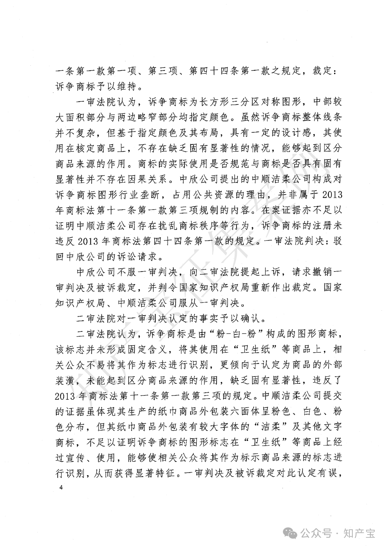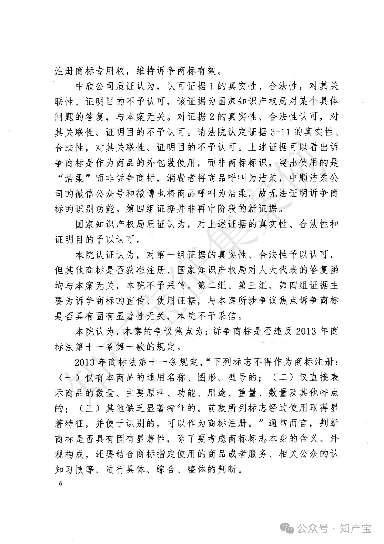 本案再审裁判观点认为:诉争商标是否违反2013年《商标法》第十一条第一款,需围绕显著特征判断主体、时间、标准及实际使用影响展开。其一,判断主体为商标指定商品的相关公众(即卫生纸消费者及营销经营者),以其普遍知识水平和认知能力为依据;其二,固有显著性判断原则上以商标申请注册时的事实状态为准,考量标志本身含义、外观及相关公众当时认知,无需事后使用情况;其三,判断标准需整体审视标志能否识别商品来源,结合指定商品关联度,本案诉争商标为长方形三分区对称指定颜色图形,有设计感,与“卫生纸”关联弱,能识别来源;其四,诉争商标非卫生纸通用图形或直接描述商品特点,有设计感,不属第十一条第一款第三项“其他缺乏显著特征”情形;其五,商标实际使用方式(如作为装潢)及规范性不影响固有显著性审查,未规范使用应通过撤销制度解决,非第十一条第一款无效事由,二审错误考量使用方式,依法纠正。综上,诉争商标申请注册时具有固有显著性,符合《商标法》第十一条第一款规定。