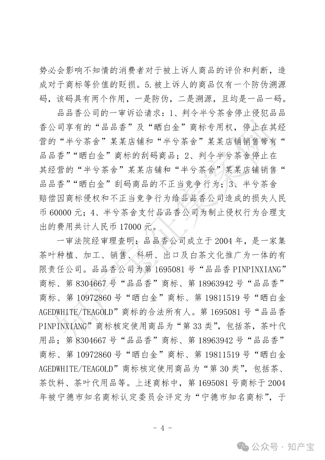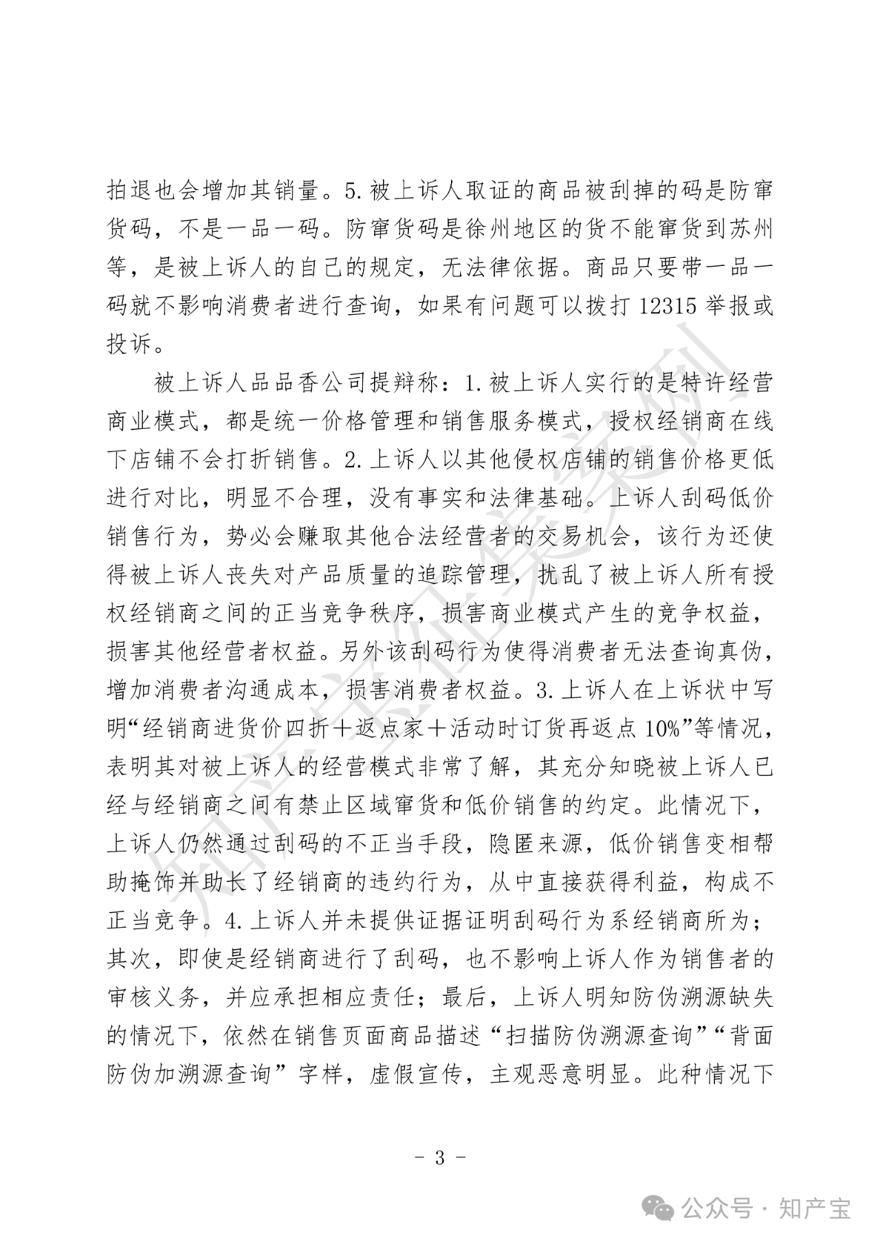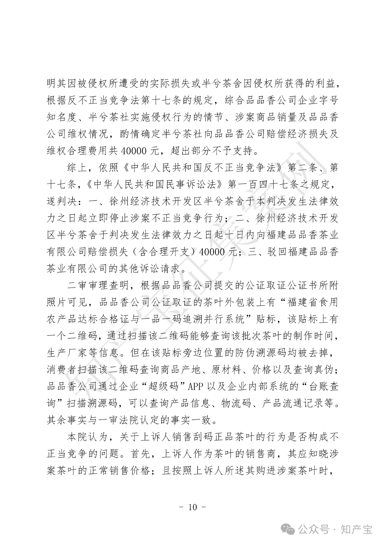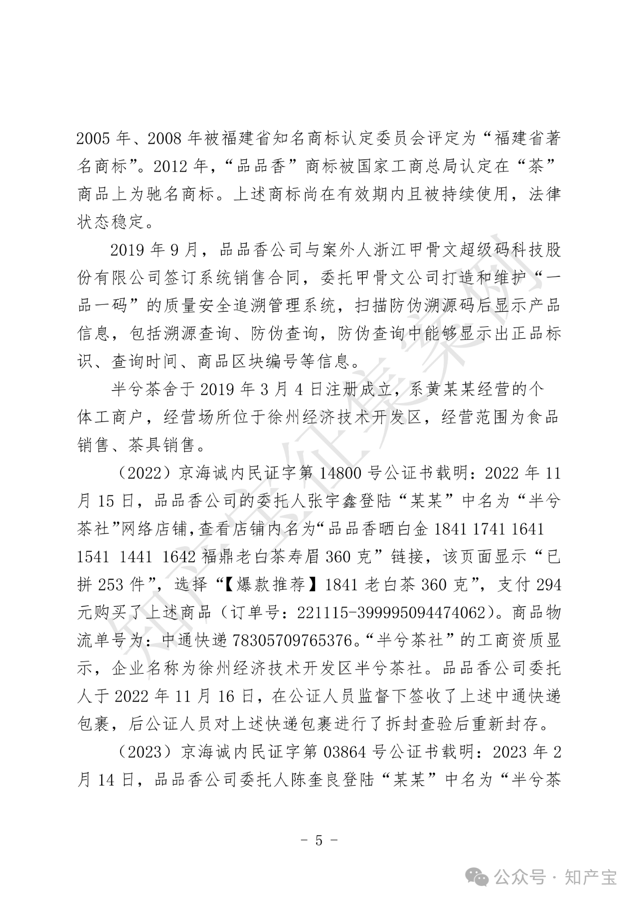 原告品品香品牌主营白茶产品,在2012年被相关机构认定为驰名商标。同时,品品香公司建立“一品一码”完善的产品质量安全可追溯管理制度,该制度是可追溯和防伪系统,能够为该公司和消费者提供识别、追溯商品来源以及辨别真伪的便利。被告半兮茶舍在网络运营店铺中销售刮掉溯源码、防伪码的品品香品牌白茶商品。品品香品牌茶叶公司主张被告刮码销售的行为构成商标权侵权及不正当竞争。
