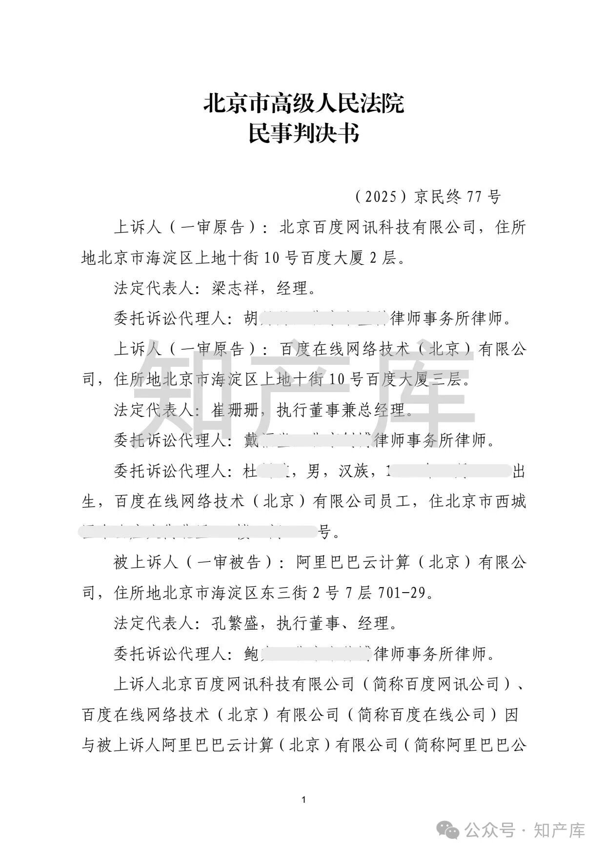 百度诉阿里商标侵权案 二审判决书