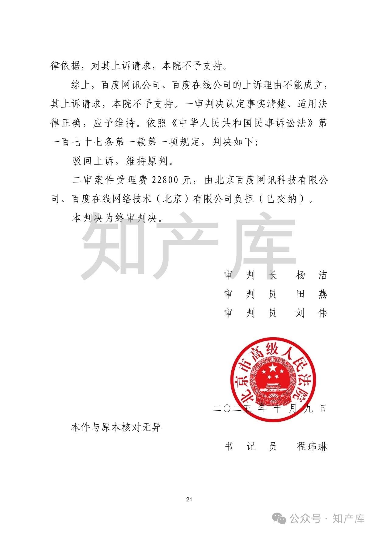 中青文诉百度文库侵权案终审判决