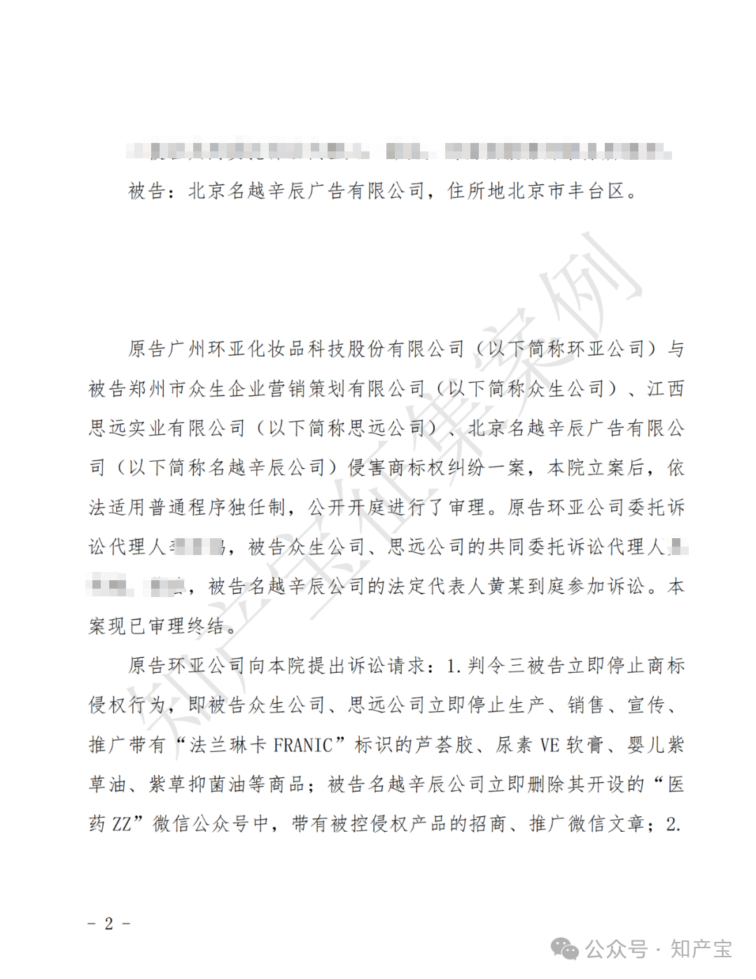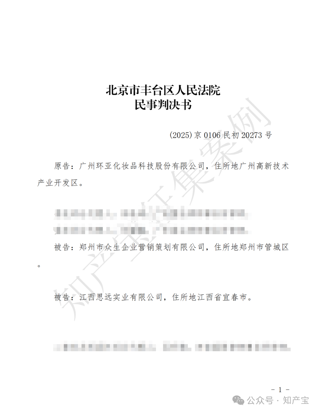 广州环亚化妆品科技股份有限公司vs郑州市众生企业营销策划公司与江西思远实业有限公司