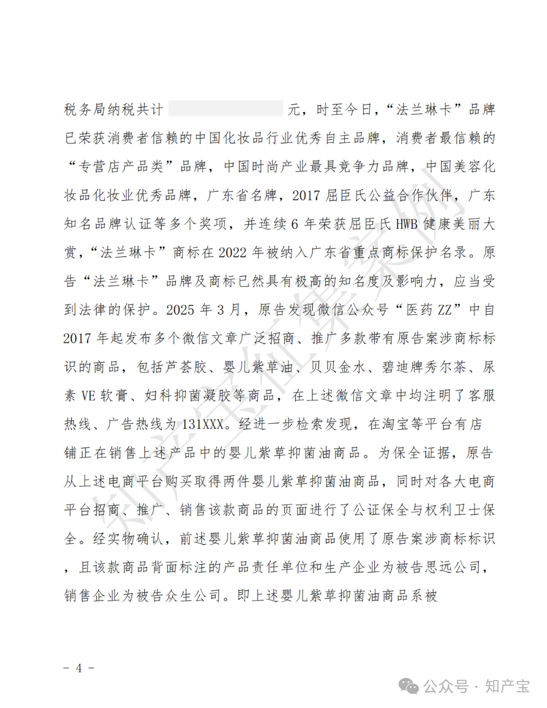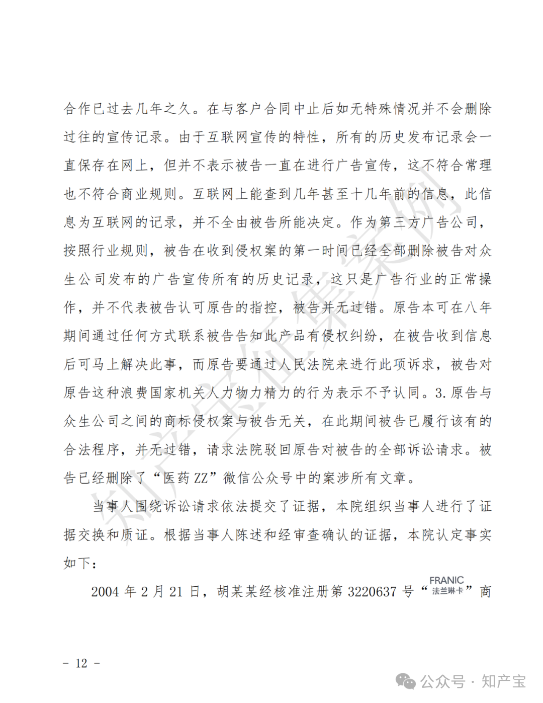 药品同名侵权,“法兰琳卡”维权胜诉 一审判决书