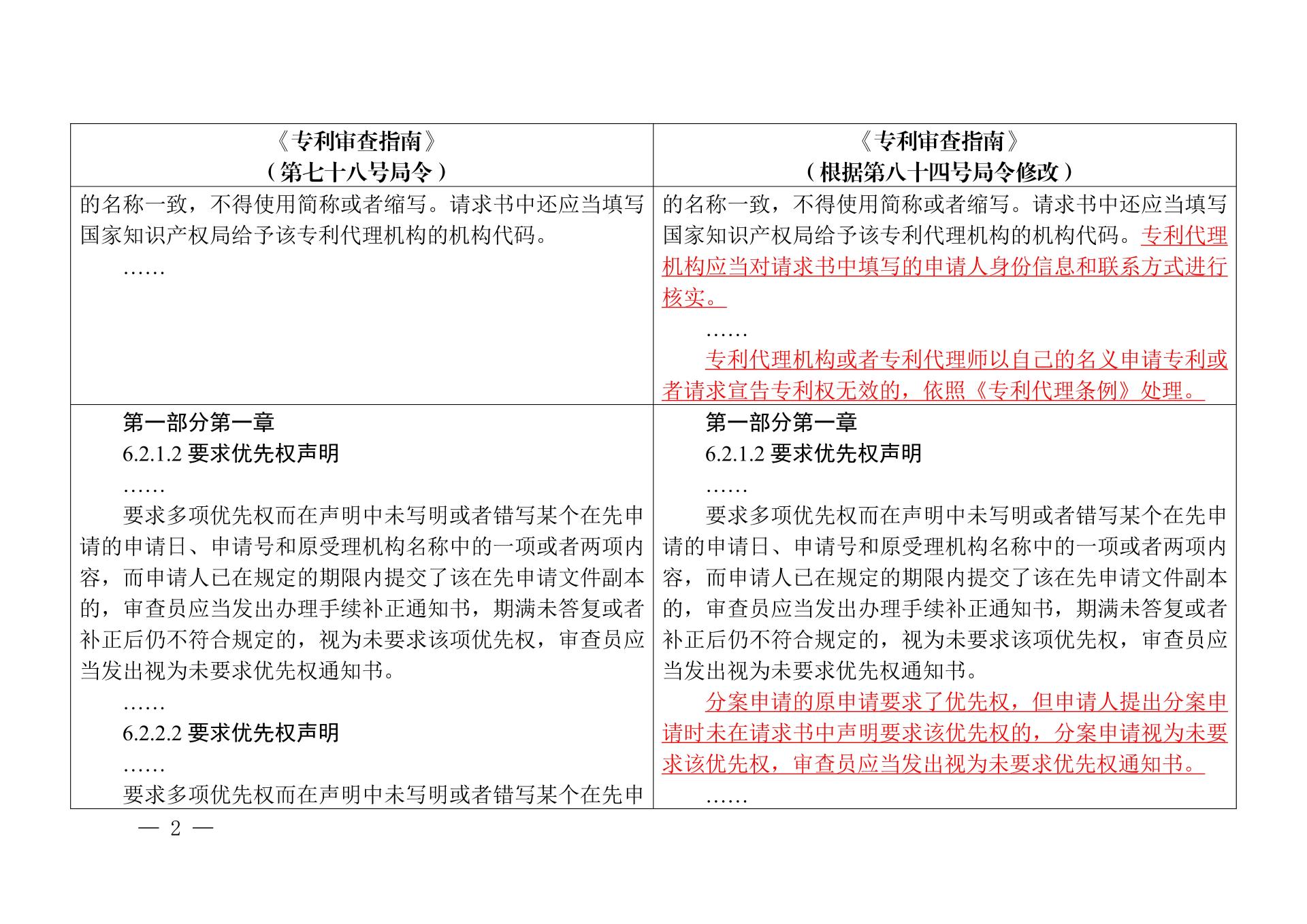 专利审查指南修改草案(第二批征求意见稿)修改对照表