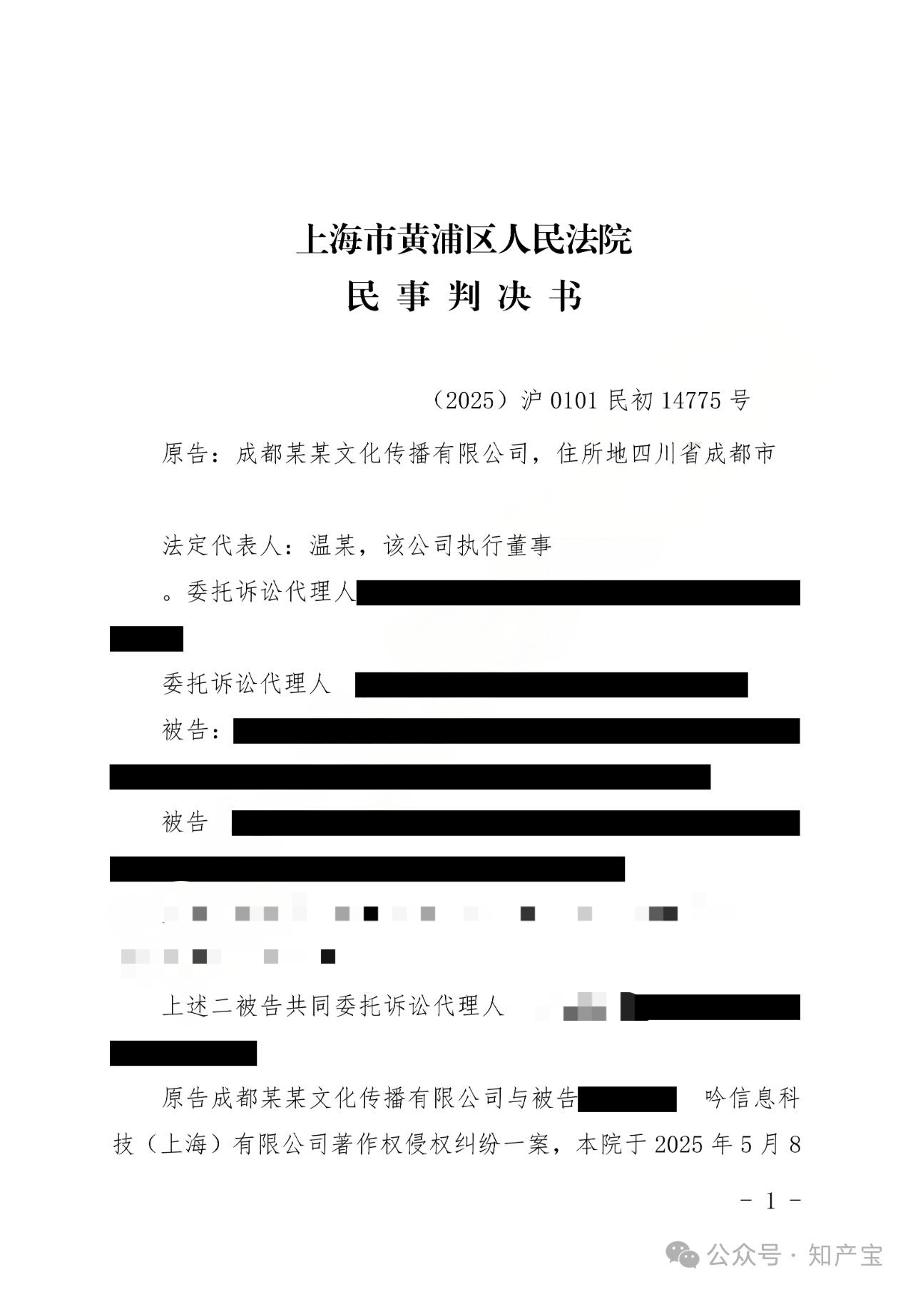 “AI生成图被侵权”著作权纠纷案一审判决书