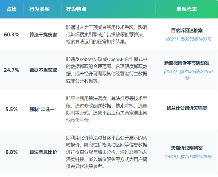 表1:涉数字平台算法不正当竞争行为分类统计