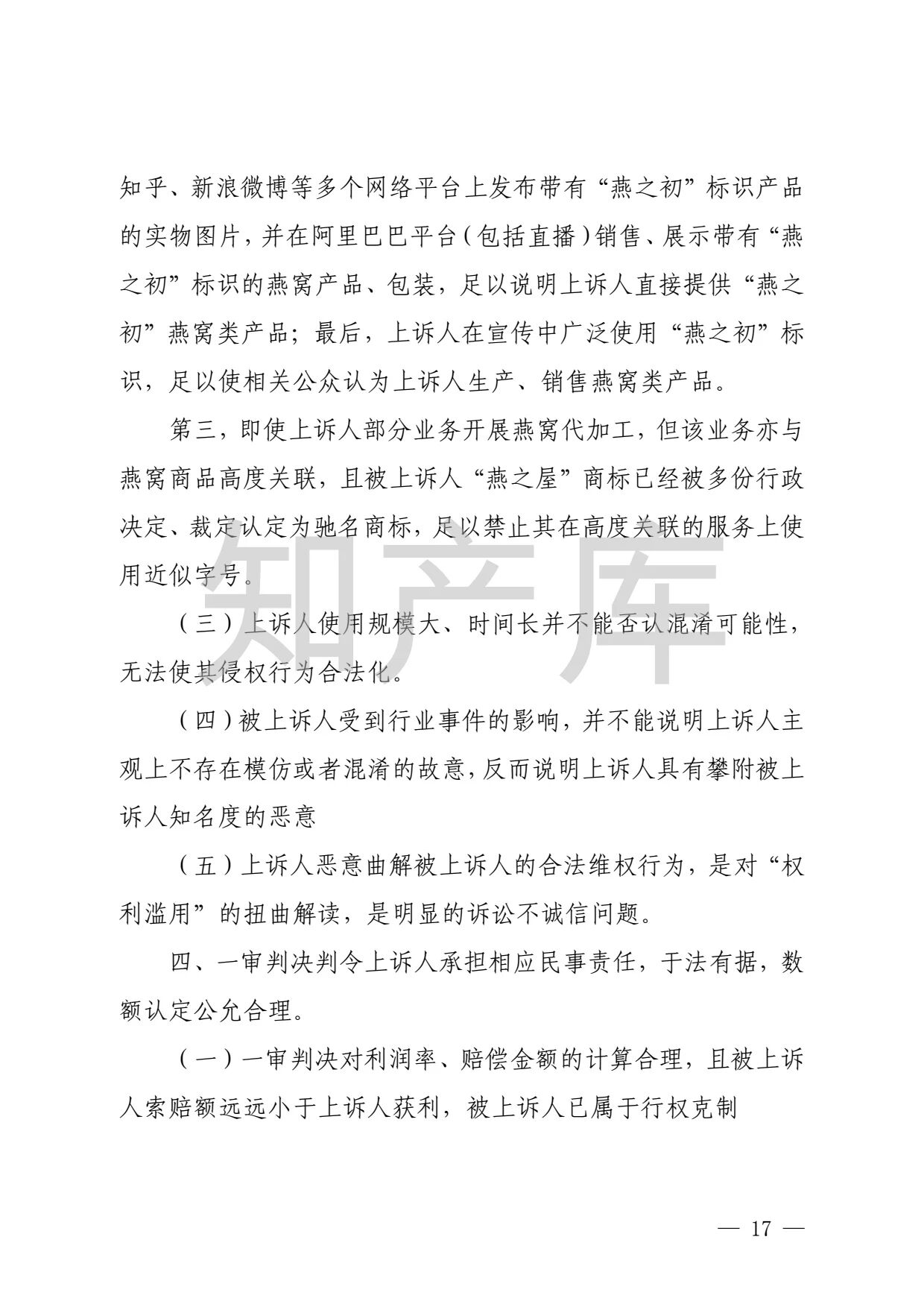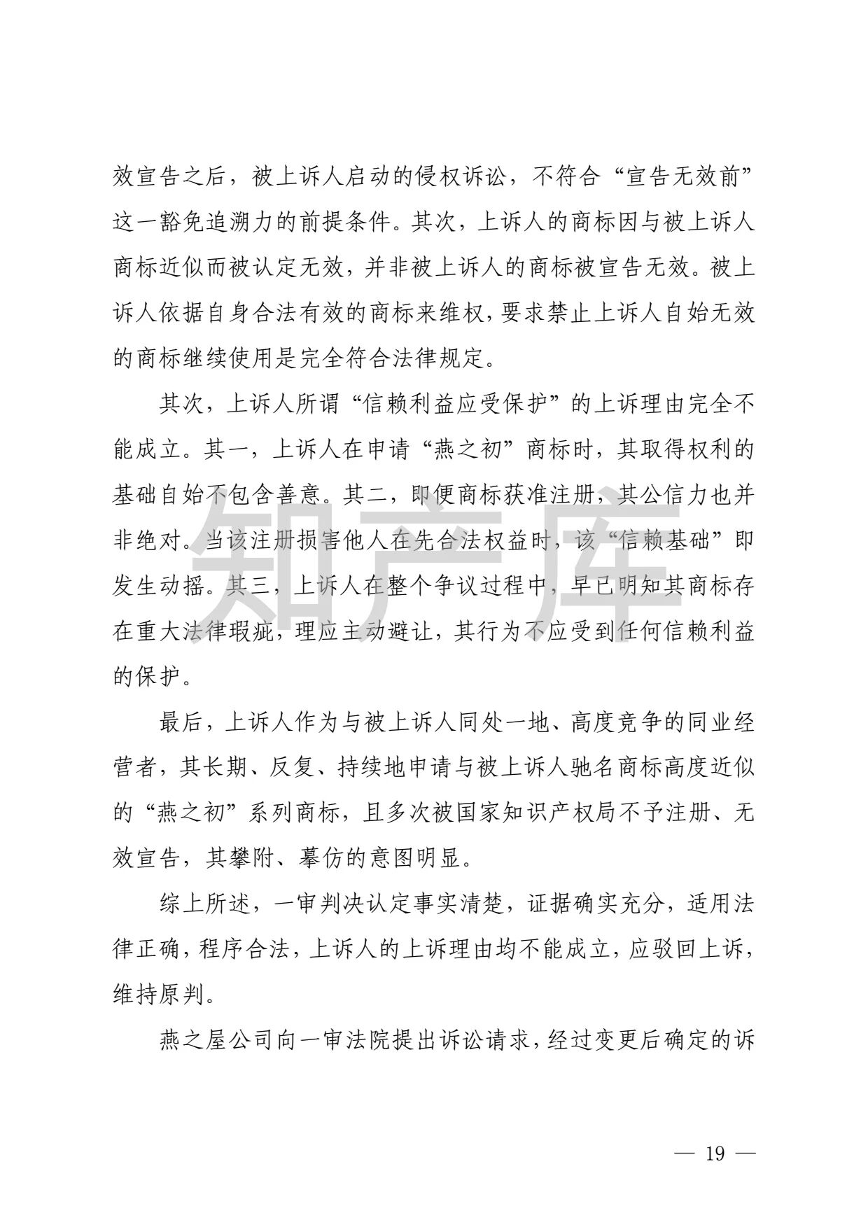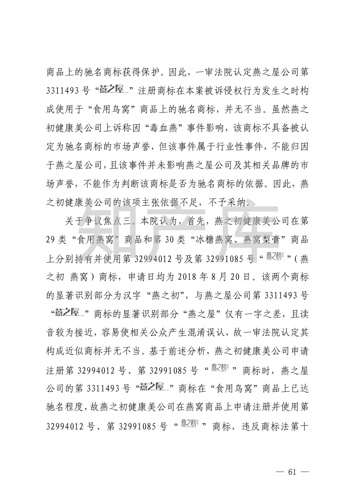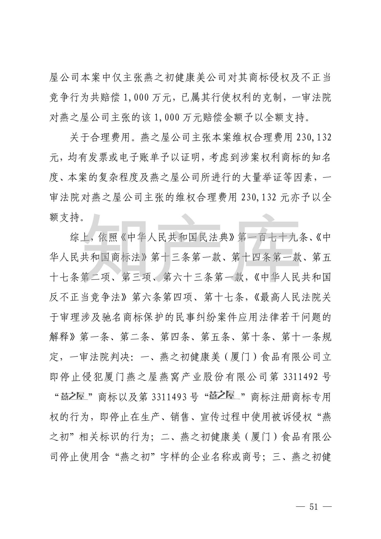 燕之屋vs燕之初商标纠纷,法院判赔1000万 二审判决书全文