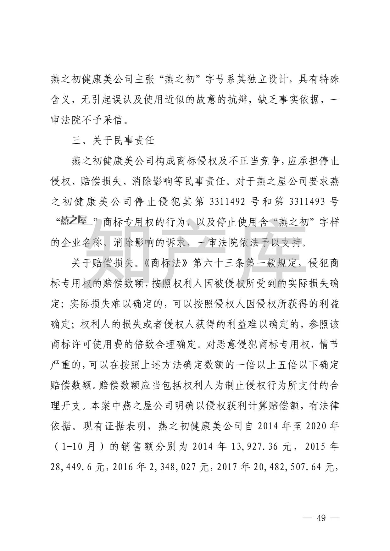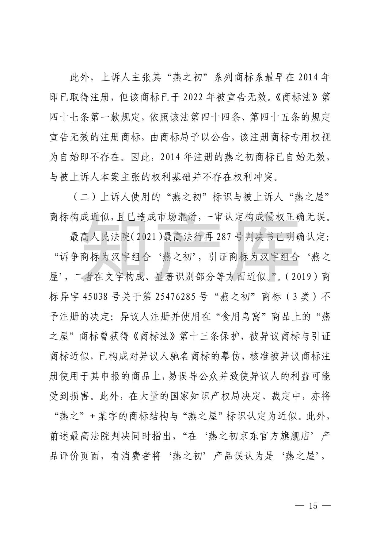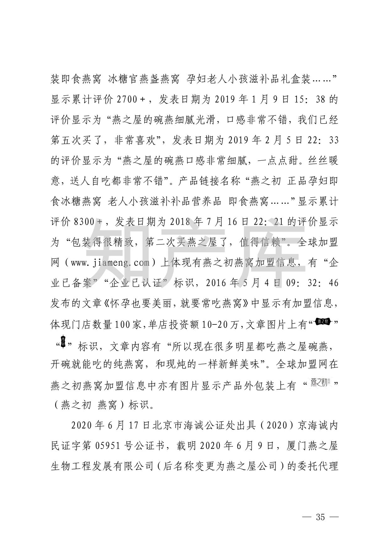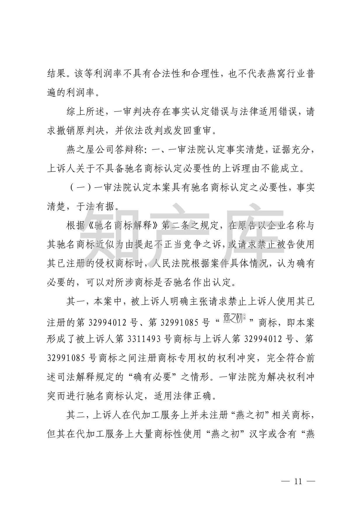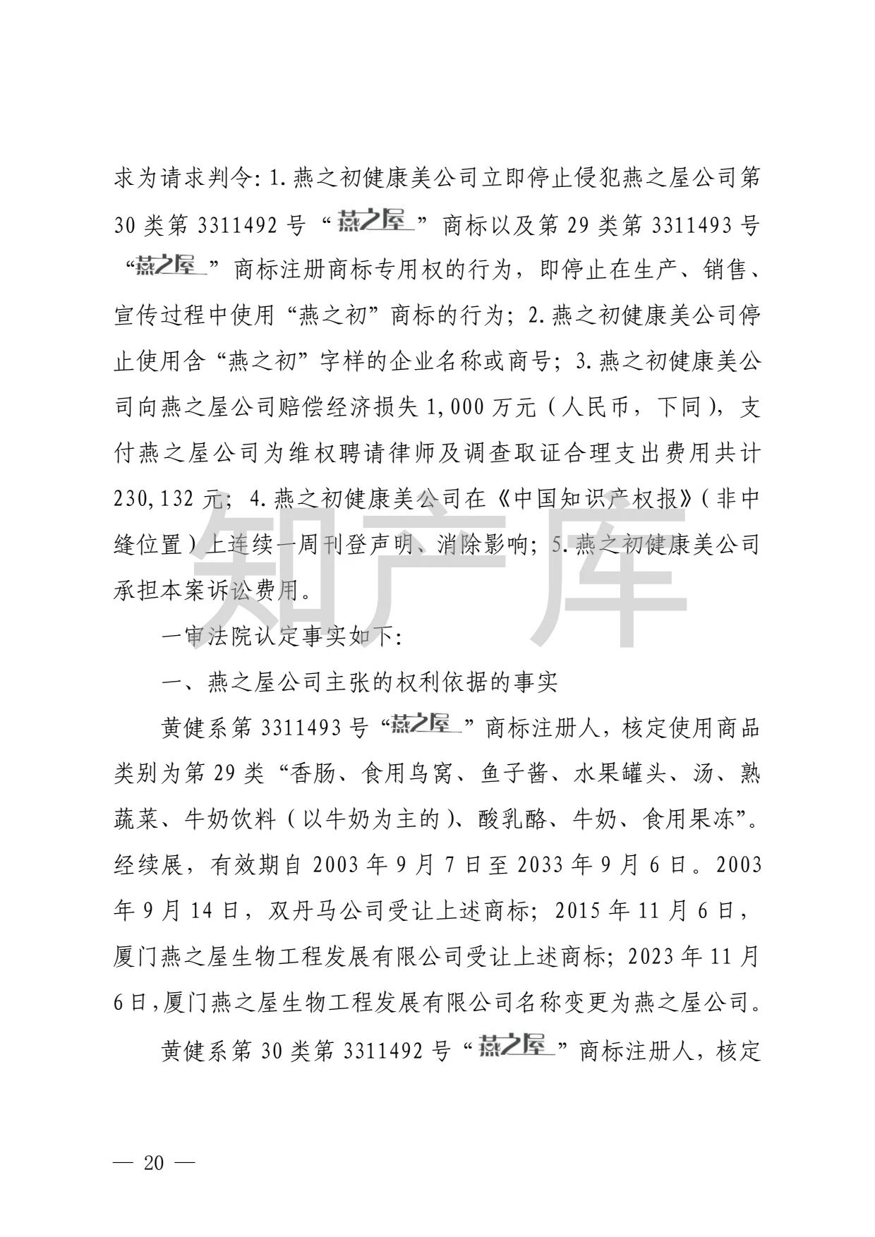 燕之屋vs燕之初商标纠纷,法院判赔1000万 二审判决书全文
