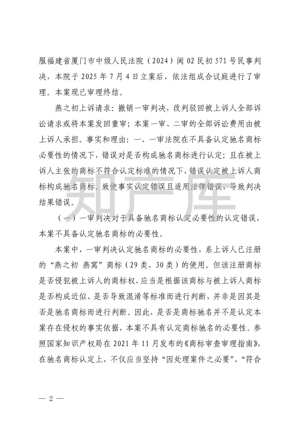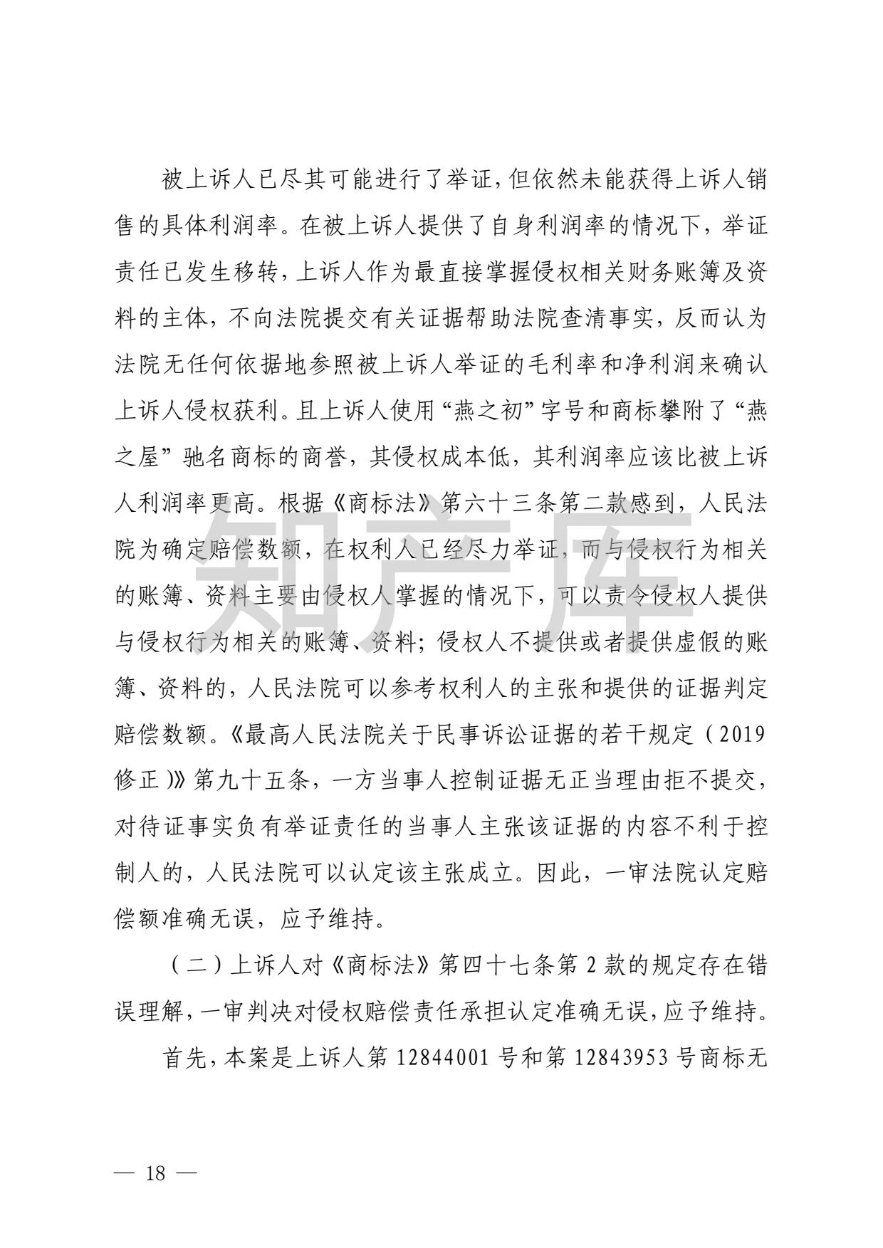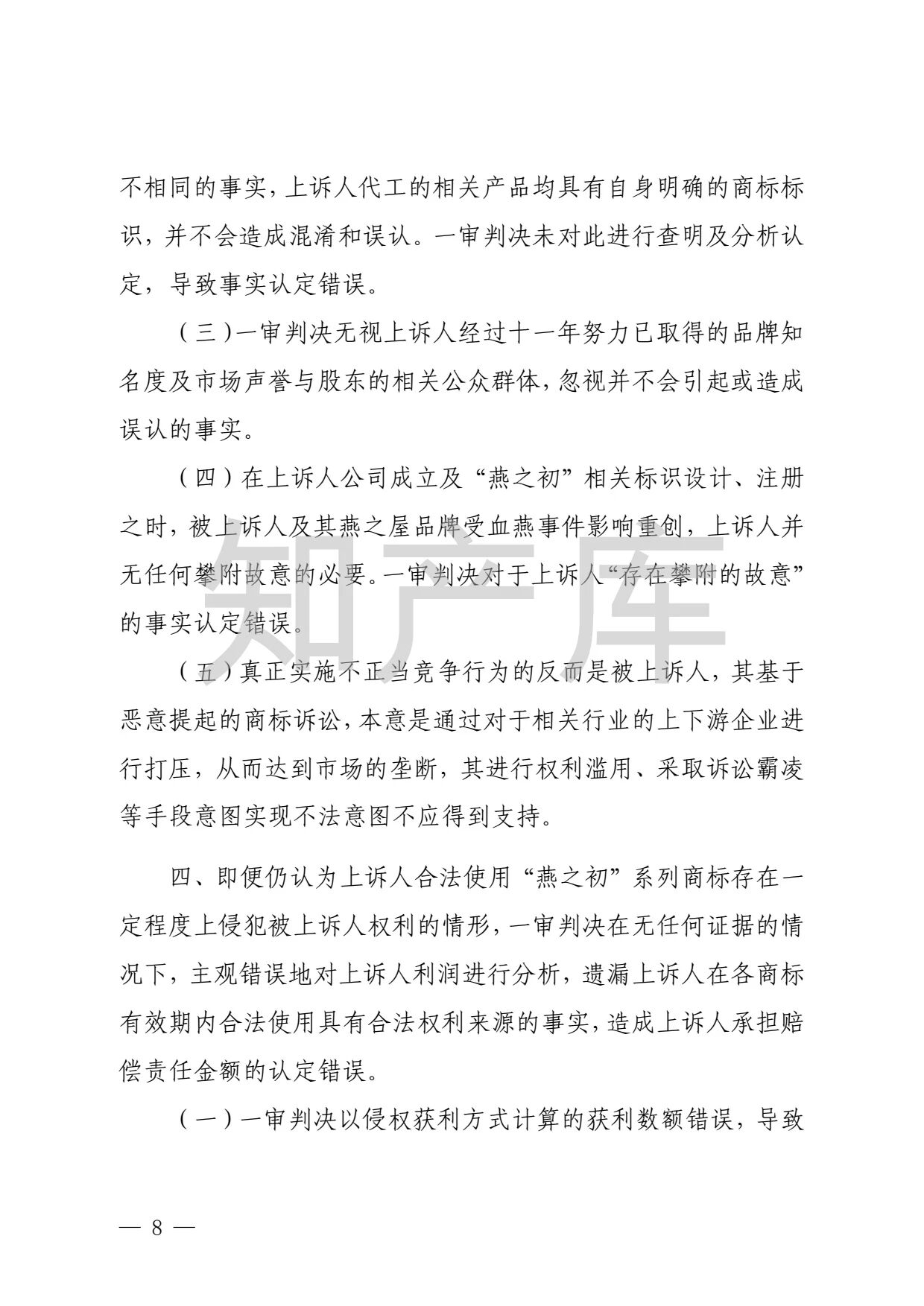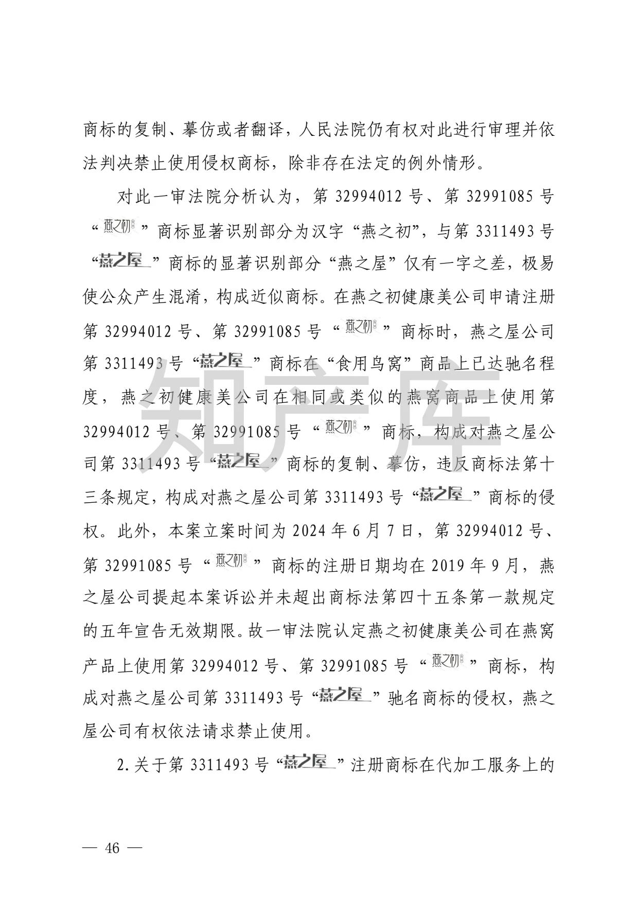 燕之屋vs燕之初商标纠纷,法院判赔1000万 二审判决书全文