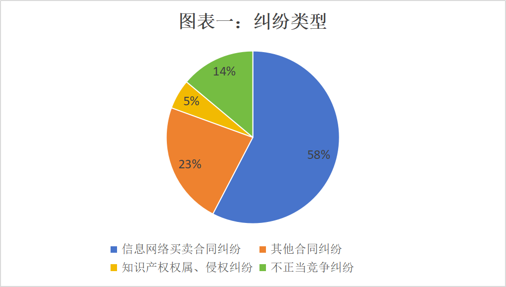 从检索结果来看,相关纠纷自2021年起呈现出逐年增长趋势,与2020年起直播带货行业的发展正相关。根据纠纷类型分类,合同纠纷案件共116份,知识产权与竞争纠纷案件共21份,侵权责任纠纷案件共2份。合同纠纷项下信息网络买卖合同纠纷案件83份,占比58%;其他合同纠纷案件33份,占比23%。知识产权与竞争纠纷项下知识产权权属、侵权纠纷案件8份,占比5%;不正当竞争纠纷案件20份,占比14%(图表一)。因直播带货涵盖了不同商品的质量、性能、功效,同时又涉及多方主体,故而具体纠纷类型呈现多样性特征。如信息网络买卖合同纠纷案件主要是消费者因商家或带货主播对直播间销售的产品进行虚假宣传引起的纠纷,不正当竞争纠纷案件主要是同类产品商家之间因对方虚假宣传行为引起的纠纷。