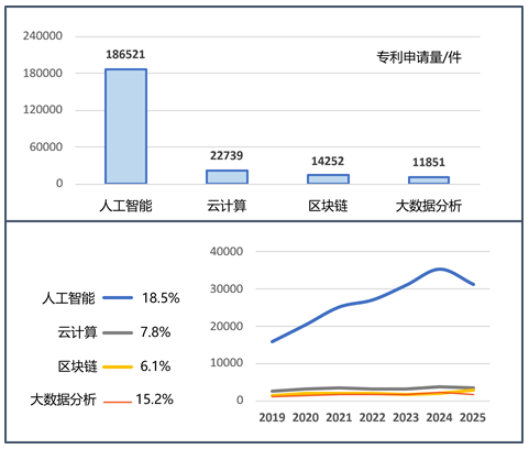 全球医疗健康行业人工智能相关技术专利申请量超18万件,占行业总申请量的39.3%,相比之下,云计算、区块链、大数据等技术的行业支撑作用相对有限。