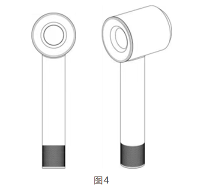 例如,图4所示为一款吹风机的外观设计,若仅根据视图对这款吹风机的外观设计进行解读,那么,吹风机机头部分的同心圆中孔既可以解读为是中空的,也可以解读为实心的。图5涉及一款咖啡机的外观专利,若仅看其视图,咖啡机顶面密布的胶囊形状设计既可以解读为图案,也可以解读为散热孔。图6是一款插头的外观专利,在仅看其视图的情况下,插头表面的网格既可以解读为图案,也可以解读为防滑纹。