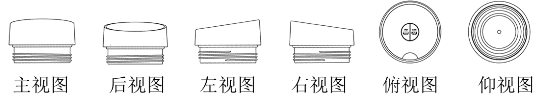 下面通过另一件以绘制视图形式提交的外观设计专利无效宣告请求案件,进一步阐释外观设计“清楚显示”的判定标准。如图9所示为一件“汽车杯直饮单跳杯盖”的外观设计专利[4],其外观设计视图为六面正投影视图。简要说明中写明其设计要点在于杯盖顶部的设计,包括开关按钮、圆锥形外圈,出水口等,最能体现设计要点的视图为后视图。与便携式榨汁杯案类似的是,本案的争议焦点在于杯盖上端面的设计是否满足“清楚显示”的要求。本案请求人主张,杯盖上端面究竟是圆弧过渡还是其他形状过渡无法判断,杯盖顶部中央的圆形开关与上端面是齐平还是高出或低于上端面无法判断。专利权人则认为,杯盖上端面不存在圆弧面,与四周是直角相连的。